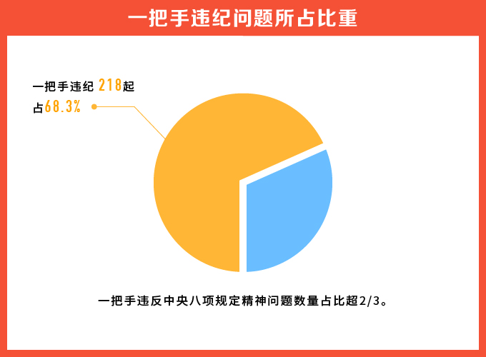 广大党员领导干部本应作落实中央八项规定精神的表率,发挥“头雁效应”,然而,从通报曝光的319起典型案例看,单位一把手共218起,占全部案例的68.3%,超过总数的2/3。这中间既有党政机关干部,又有国有企业工作人员;既有县处级以上的领导干部,又有基层乡镇干部,涉及不同地域、不同行业。
