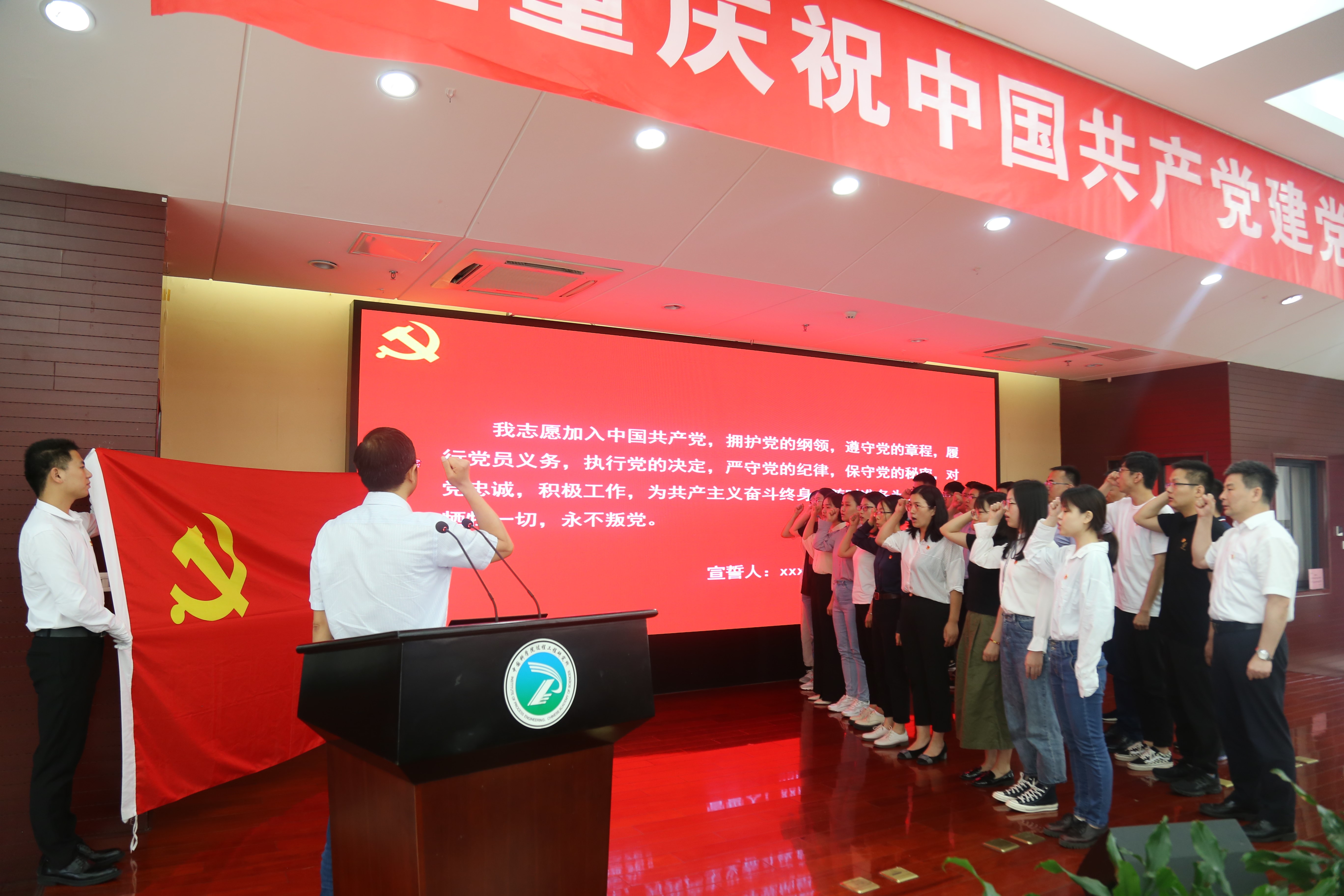 在党员宣誓环节,由朱庆山领誓,25名新党员面向党旗庄严宣誓,全体党员重温入党誓词。在建党百年之际,新老党员共同宣誓,显示出U9彩票党员坚定的政治信念,通过共同的信仰凝聚起坚不可摧的奋进力量。