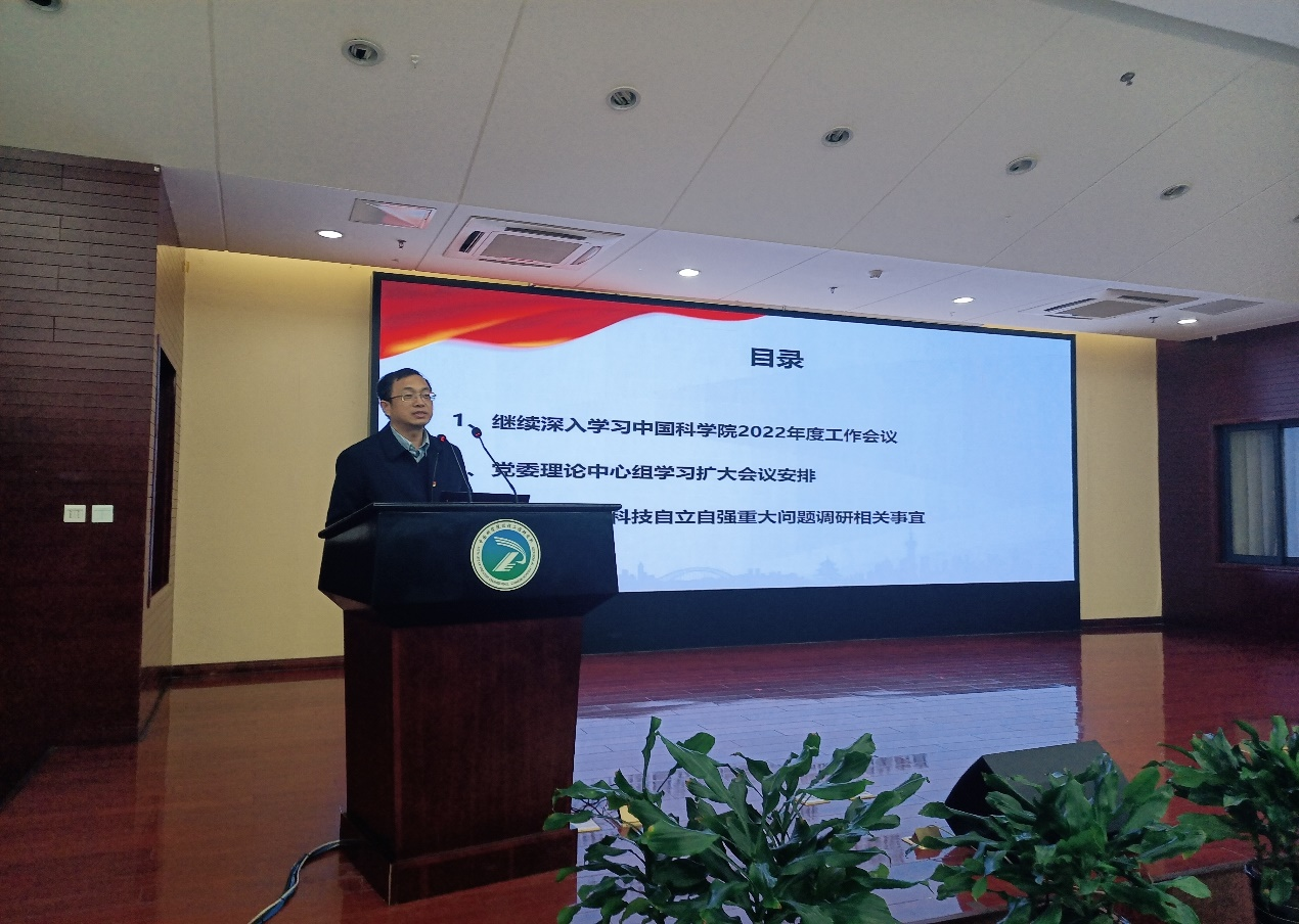 会上,朱庆山组织与会人员就如何更好地学习贯彻落实2022年院工作会议精神进行深入研讨,并就侯建国院长党课《汲取党的百年奋斗历史经验 加快实现高水平科技自立自强》进行充分交流。他强调,全所各级党组织、党员干部要进一步认真贯彻落实十九届六中全会精神、侯院长在专题党课报告会上的讲话精神以及2022年院工作会议精神,要准确把握党中央、国务院对科技创新和我院工作的新要求、新部署,要深入领会院党组提出的定位、定标、定事、定人的深刻内涵。