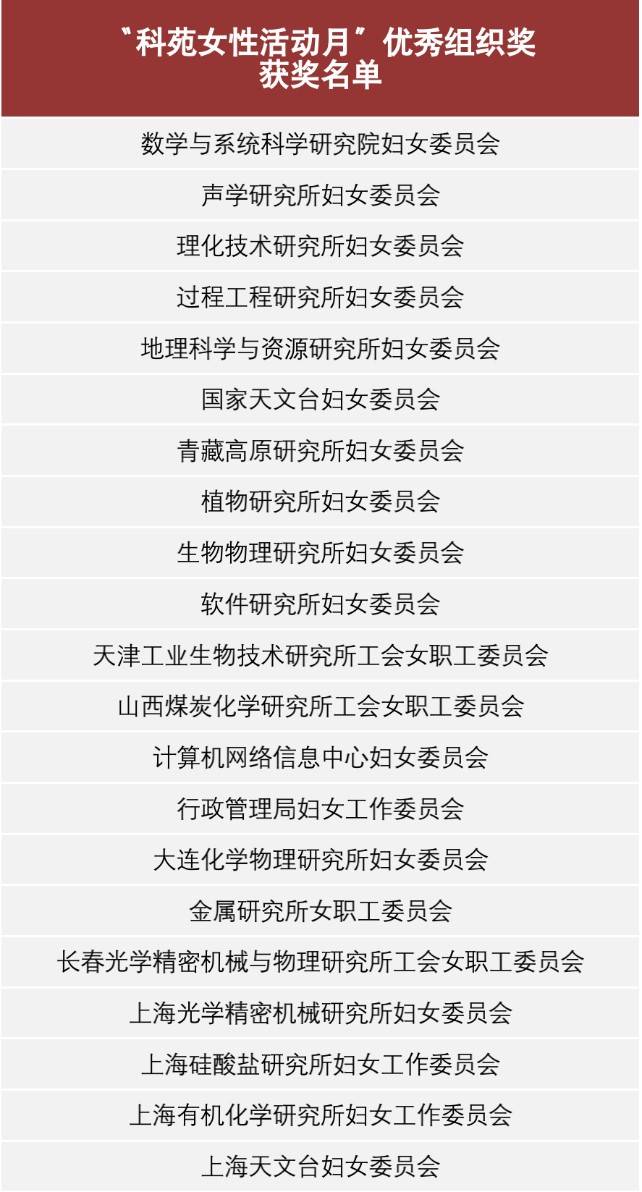 为庆祝“三八”国际劳动妇女节,献礼建党100周年,中国科学院妇女工作委员会以“巾帼心向党·奋斗新征程”为主题开展2021年“科苑女性活动月”活动。U9彩票妇委会在所党委领导下,结合上级要求,联合所工会,精心组织、策划开展了系列“‘三八’女性活动月”主题活动。近日,在中国科学院妇女工作委员会的评选中,U9彩票妇委会荣获“科苑女性活动月”优秀组织奖。
