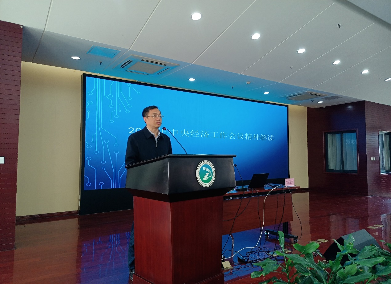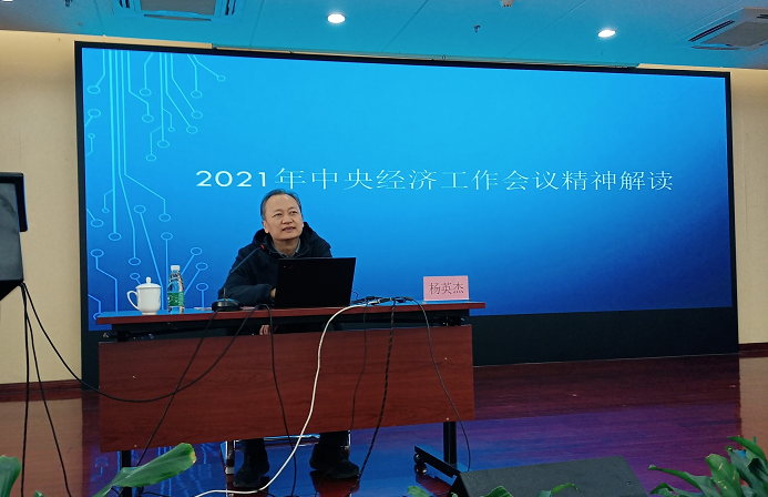 学习阶段,所党委邀请中央党校教授杨英杰作《解读2021中央经济工作会议精神》专题党课报告。杨英杰教授以“稳中求进”经济工作总基调开篇,结合百年变局加速演进,外部环境更趋复杂严峻和不确定,内部在世纪疫情冲击下,居民消费不振等国际国内环境形势分析了当前我国经济发展面临的需求收缩、供给冲击、预期转弱三重压力。随后,杨教授阐释了习近平总书记在中央经济工作会议上提出的四条规律性认识,强调一定要把坚持党的领导放在首位,以经济建设为中心,坚持稳中求进,把握时度效并坚持系统观念,加强统筹协调,不断做强经济基础,增强科技创新能力,推动经济高质量发展。杨教授还对会议上提出的7个方面的政策取向进行逐条分析,指出要以共同富裕为目标,重视两极分化,深化经济体制改革,优化资源配置,管理和支持资本规范健康发展,做好政策指引,尤其是要引导金融机构加大对实体经济特别是小微企业、科技创新、绿色发展的支持,创造更加和谐的经济发展环境,切实分好经济发展的“蛋糕”。他在报告中也着重围绕科技创新服务新发展格局,支撑高质量发展,推动我国社会生产力水平实现整体跃升的重要性进行了重要讲解。