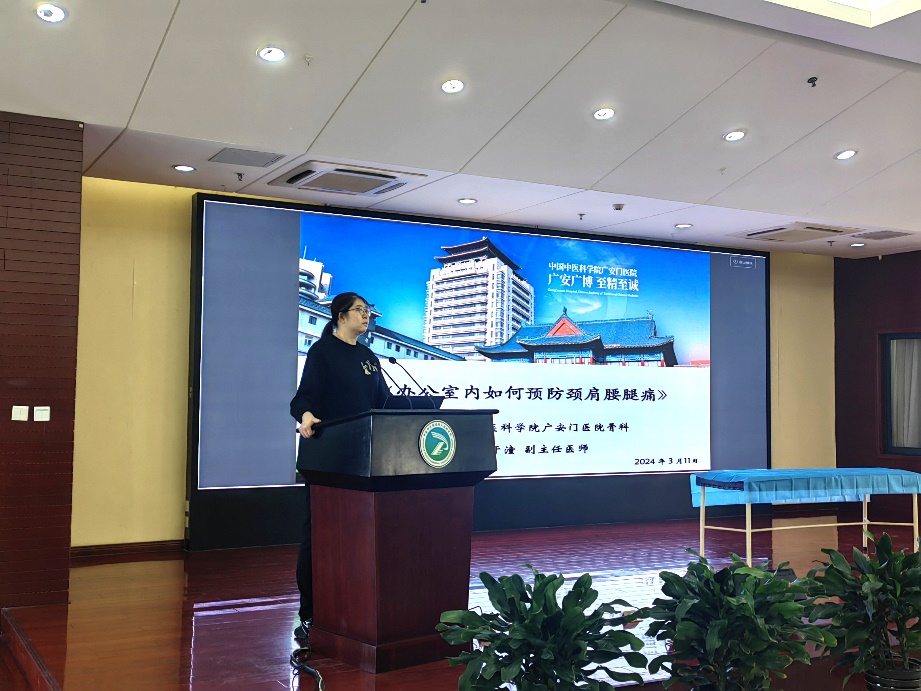 此外,为关注职工健康,促进生活和工作的良性发展,所妇委会与医务室联合组织了特色主题讲座。3月11日,邀请中国中医科学院广安门医院副主任医师于潼做“办公室内如何预防颈肩腰腿痛”主题讲座。于潼从颈肩腰腿痛的常见原因、疾病类型、生活调摄及运动训练四个方面进行讲解,结合问题答疑、现场问诊为到场的职工学生和离退休人员做了浅显易懂的健康科普,并现场带大家练习可以缓解颈肩腰腿痛的动作。最后,于潼谈到,在工作和生活中,要避免不良姿势、培养良好习惯,生命在于运动,希望大家动起来,激活肌肉,打造健康人生。