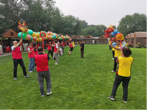 活动伊始,通过一系列有趣的破冰游戏,研究部领导和职工、新职工和老职工建立起更加紧密和谐的同事关系,笑声与欢呼声交织,为后续的团队挑战奠定了良好的情感基础。接下来是飞盘团练,参与者们分组竞技,每一次精准的投掷都伴随着团队成员间的热烈掌声与欢呼,展现了大家出色的团队协作能力与个人风采。紧接着是“合力建塔”游戏,此环节要求多人通过拉线的方式,精确操控小块积木,垒搭成塔,这不仅是对个人技能的考验,更是对团队协作与策略规划的极致挑战,大家集思广益,共同解决一个又一个难题,最终成功搭建起稳固而精美的“绿色化工之塔”,象征着团队智慧与力量的完美结合。在射箭环节中,大家拉弓射箭,力求命中靶心,相互鼓励,共同提升射箭水平。午后时分,一场别开生面的“团队攻防”游戏将团建氛围推向了另一个高潮,在蒙上双眼的情况下,参与者需要依靠听觉和直觉以及借助团队成员的语言提醒来判断对方的位置,进行“攻击”,这不仅锻炼了大家的反应能力,还加深了彼此之间的了解和信任,让大家深刻体会到在未知与挑战面前,团队的力量是无穷的。活动的最后,最令人期待的“巨龙腾飞”环节终于上演,每队成员们利用气球、打气筒和各种工具,共同打造出一条栩栩如生、色彩斑斓的气球“巨龙”,随着音乐的响起,大家步伐一致、动作协调舞动“巨龙”,舞出了“飞龙在天”、“飞龙摆尾”、“龙马精神”、“盘龙云海”等经典片段,仿佛真的在驾驭一条巨龙翱翔于天际。这一刻,团队的力量与创意得到了完美的展现,也象征着我们在绿色化工领域的探索与前行正如这“巨龙”一般,充满无限可能与希望。