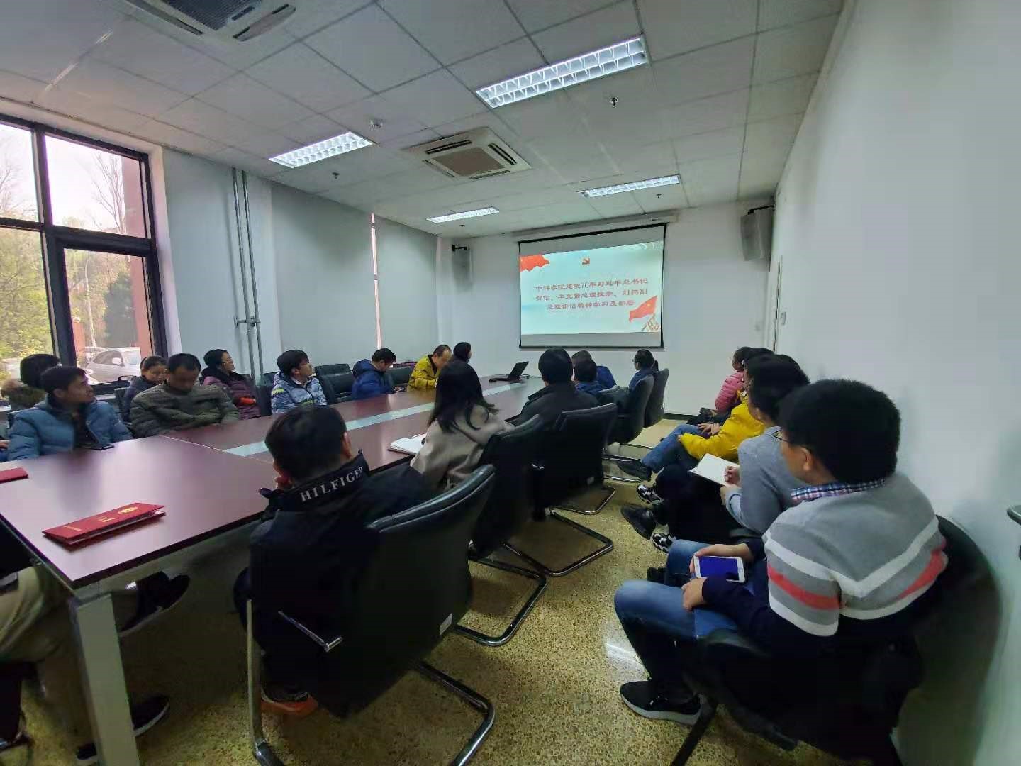 随后,任瑛同志向在座党员传达了“中科学院建院70年习近平总书记贺信、李克强总理批示、刘鹤副总理讲话精神学习及部署”。2019年11月1日,中国科学院建院70周年,中共中央总书记、国家主席、中央军委主席习近平发来贺信,中共中央政治局常委、国务院总理李克强对中科院建院70周年作出批示,中共中央政治局委员、国务院副总理刘鹤在建院70周年庆祝大会讲话。习近平总书记在贺信中指出,70年来,在党的坚强领导下,中国科学院大胆探索、开拓创新、勇于实践,解决了一大批事关国家全局的重大科技问题,突破了一大批制约发展的关键核心技术,取得了一大批一流水平的原创成果,书写了新中国科技创新的辉煌篇章。中国科学院几代科学家求真务实、报国为民、无私奉献的先进事迹充分展现出我国广大知识分子的爱国情怀和高尚品格。当今世界,创新是引领发展的第一动力。中国科学院的所有科研人员需要不忘初心、牢记使命,抢抓战略机遇,勇立改革潮头,勇攀科技高峰,加快打造原始创新策源地,加快突破关键核心技术,努力抢占科技制高点,为把我国建设成为世界科技强国作出新的更大的贡献。