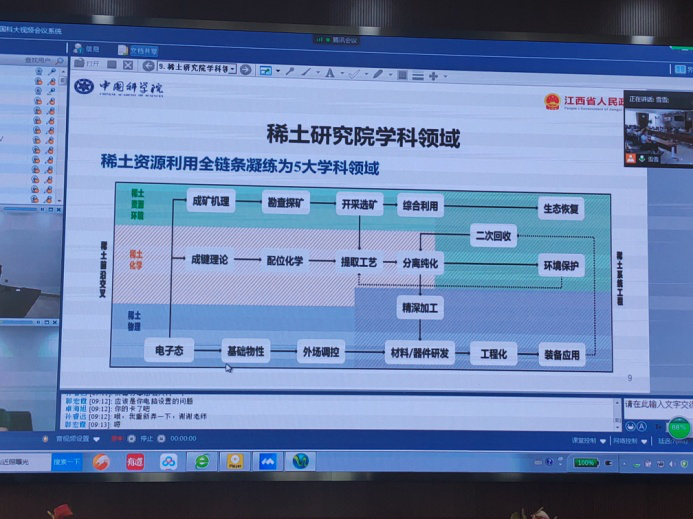 首先,副书记关雪同志介绍了中科院江西稀土研究院“云之旅”活动的背景。2019年5月20日习近平总书记视察江西赣州,特别强调“稀土是重要的战略资源,也是不可再生资源。要加大科技创新工作力度,不断提高开发利用的技术水平,延伸产业链,提高附加值,加强项目环境保护,实现绿色发展、可持续发展。”为贯彻落实习近平总书记“5·20”重要讲话精神,中国科学院稀土研究院于2020年1月10日在江西赣州正式挂牌成立。目前,稀土研究院正在整合中国科学院和江西省近二十个单位的科研力量参与筹建。通过线上视频,与会党员同志们了解了稀土研究院的基本情况,并重点听取了由本支部部分党员同志参与筹建的稀土院资源环境所的情况介绍。同志们对稀土院的筹建速度之快感到惊叹,纷纷表示愿意支持稀土院工作,加强相关合作。