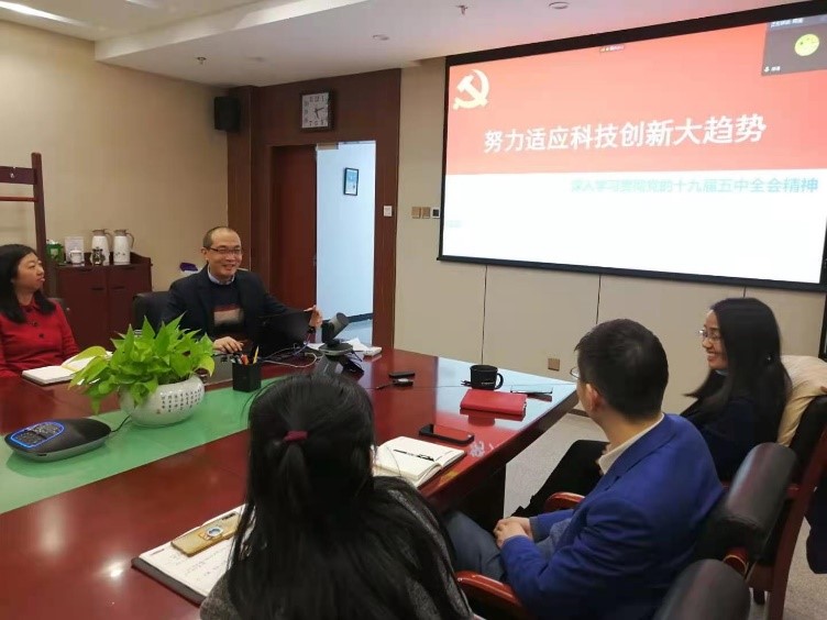 所优秀共产党员张海涛同志解读了十九届五中全会,特别指出党中央坚持把创新放在国家现代化建设全局中的核心地位,把科技自立自强作为国家发展的战略支撑,摆在各项规划任务的首位,这是党编制五年规划建议历史上的第一次。