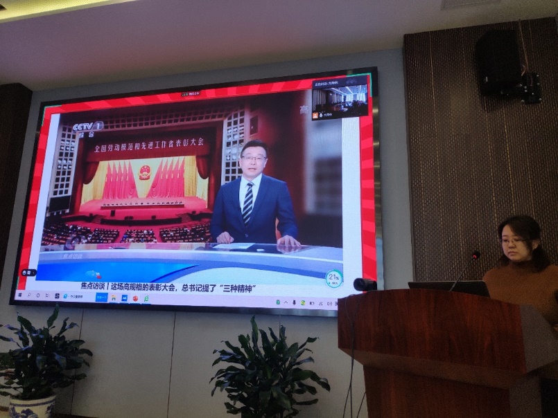 支部副书记关雪同志带领学习习近平总书记在全国劳动模范和先进工作者表彰大会上的重要讲话精神