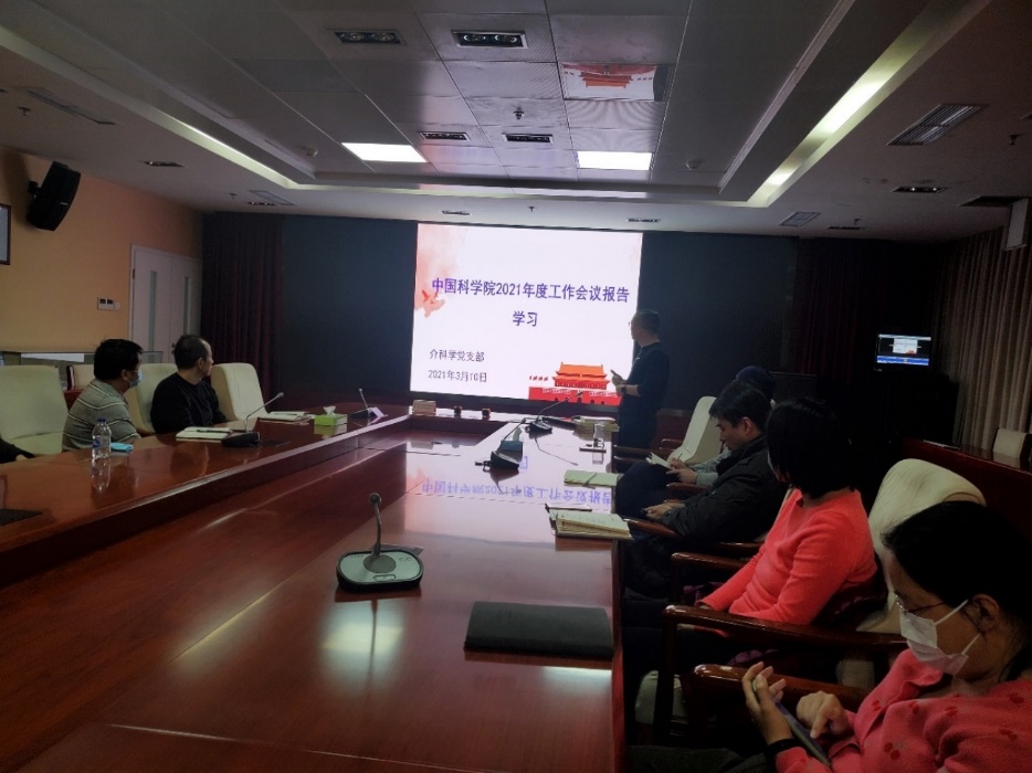3月10日,U9彩票介科学党支部召开支部党员大会,深入学习《中国共产党章程》和侯建国院长在2021年度院工作会议上的报告,会议由党支部书记王维同志主持。