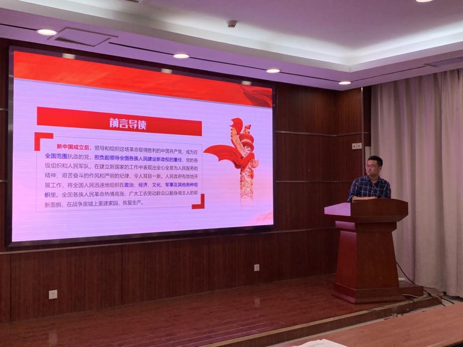 青年理论小组成员谢喜秀、王自强分别选取新民主主义革命时期、社会主义革命和建设时期做专题党课,向支部党员梳理了中国共产党第一次代表大会、第一次国内革命战争、第二次国内革命战争、抗日战争的中流砥柱、第三次国内革命战争整个新民民主主义革命时期中国共产党的发展历史,学习了社会主义革命和建设时期,中国共产党作为执政党确立社会主义基本制度,建设社会主义道路,实现中华民族伟大复兴的历史征程的全过程。