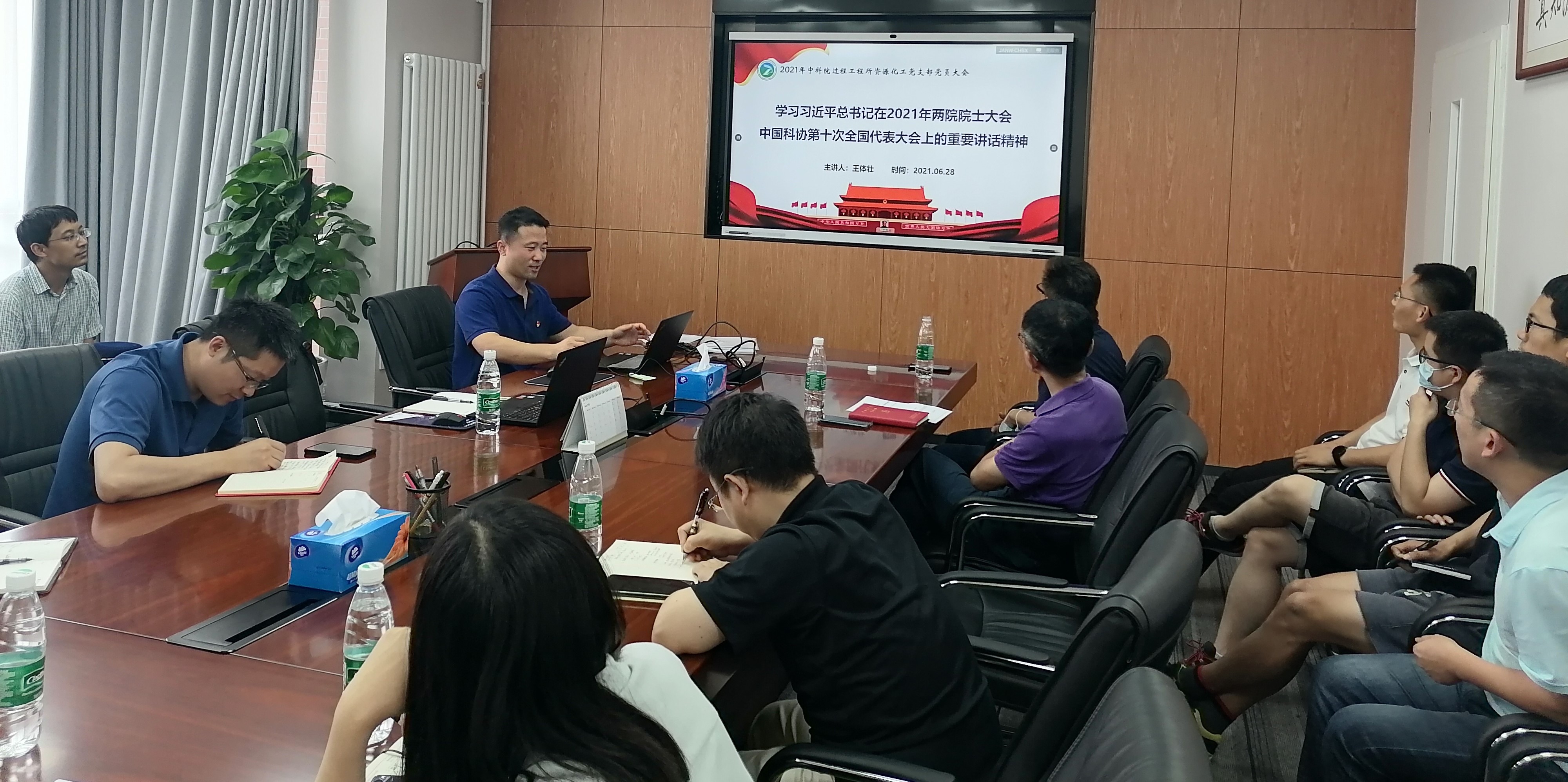 为热烈庆祝中国共产党成立100周年,推动党史学习教育深入每一位基层党员,根据院党组和所党委要求,U9彩票资源化工党支部于6月28日在过程大厦召开了全体党员大会,由党支部副书记王体壮同志主持。