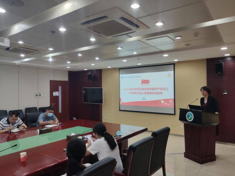 首先,江霞同志从回顾百年光辉历程以及四个伟大成就、诠释中国共产党的伟大建党精神、九个必须展望中华民族伟大复兴的光明前景、寄语广大青年和号召全体中国共产党员四个方面带头学习了习近平总书记在庆祝中国共产党成立100周年大会上的重要讲话精神。要求全体党员通过学习坚定理想信念,牢记初心使命,践行党的宗旨。
