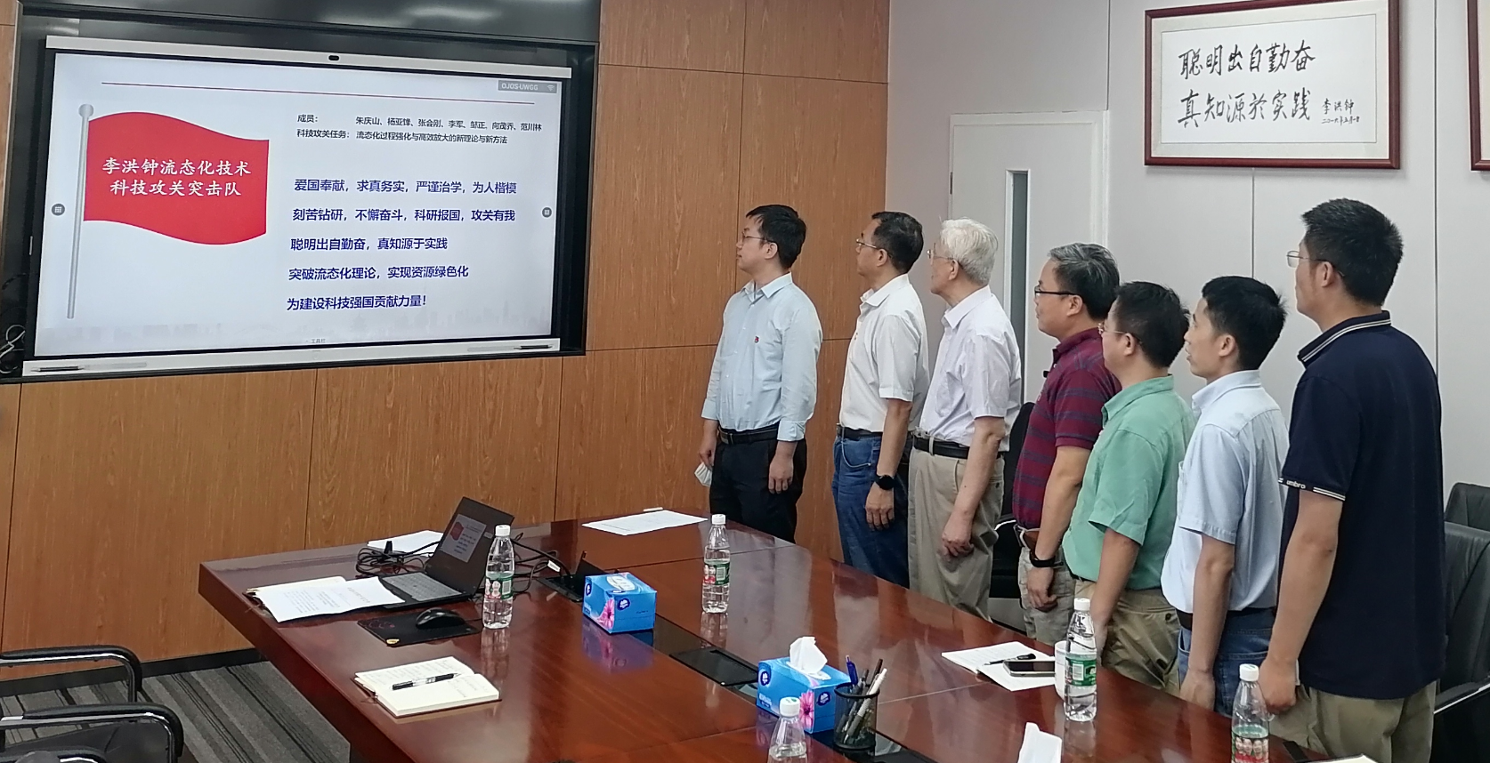 为充分发挥党支部战斗堡垒作用和党员队员的先锋模范作用,深入推进“传承老科学家精神,弘扬新时代科学家精神”专项工作和“喜迎党的二十大”,资源化工党支部成立了“李洪钟流态化技术科技攻关突击队”。在负责人张会刚同志的带领下进行了宣誓,新成立突击队旨在解决我国复杂矿产资源难以高效利用的难题。