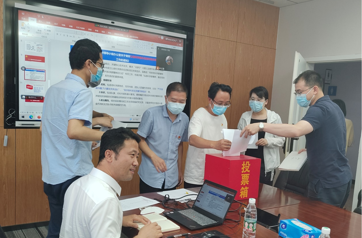 最后,支部副书记王体壮同志主持了支部委员会换届。王体壮同志从工作思路、工作方案、工作成效和工作亮点等方面对党支部2019-2021年的工作进行了详细的总结,并从 “国家队”、“国家责”阐述了对即将开展的党建和科技工作思考和感受。最后,通过投票选举产生了新一届的支部委员。