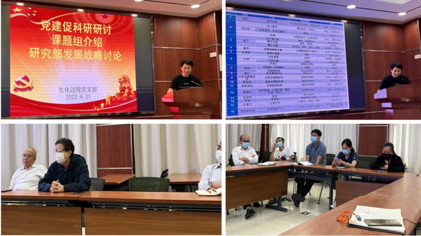 为提升基层党组织的影响力,夯实党建根基,会议开展了党建促科研研讨会之“课题组介绍和研究部发展战略讨论”系列活动,本次会议邀请赵庆生同志介绍了“生物资源与天然产物”课题组研究方向及代表性成果,并主持了研究部发展战略讨论,大家一致认为要联合攻关大项目,要大力引进海外青年人才,既要打造自身的硬实力,又要加强与研究部内外相关团队的合作。同时为了进一步深化党建促科研的成效,党支部大会邀请了非党员的课题组长和科研骨干参加,加强研究部内部互相了解,促进课题组间合作,共同探讨研究部未来发展,取得了显著的效果。