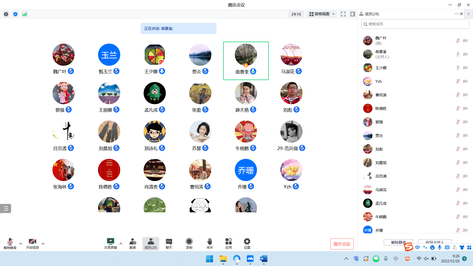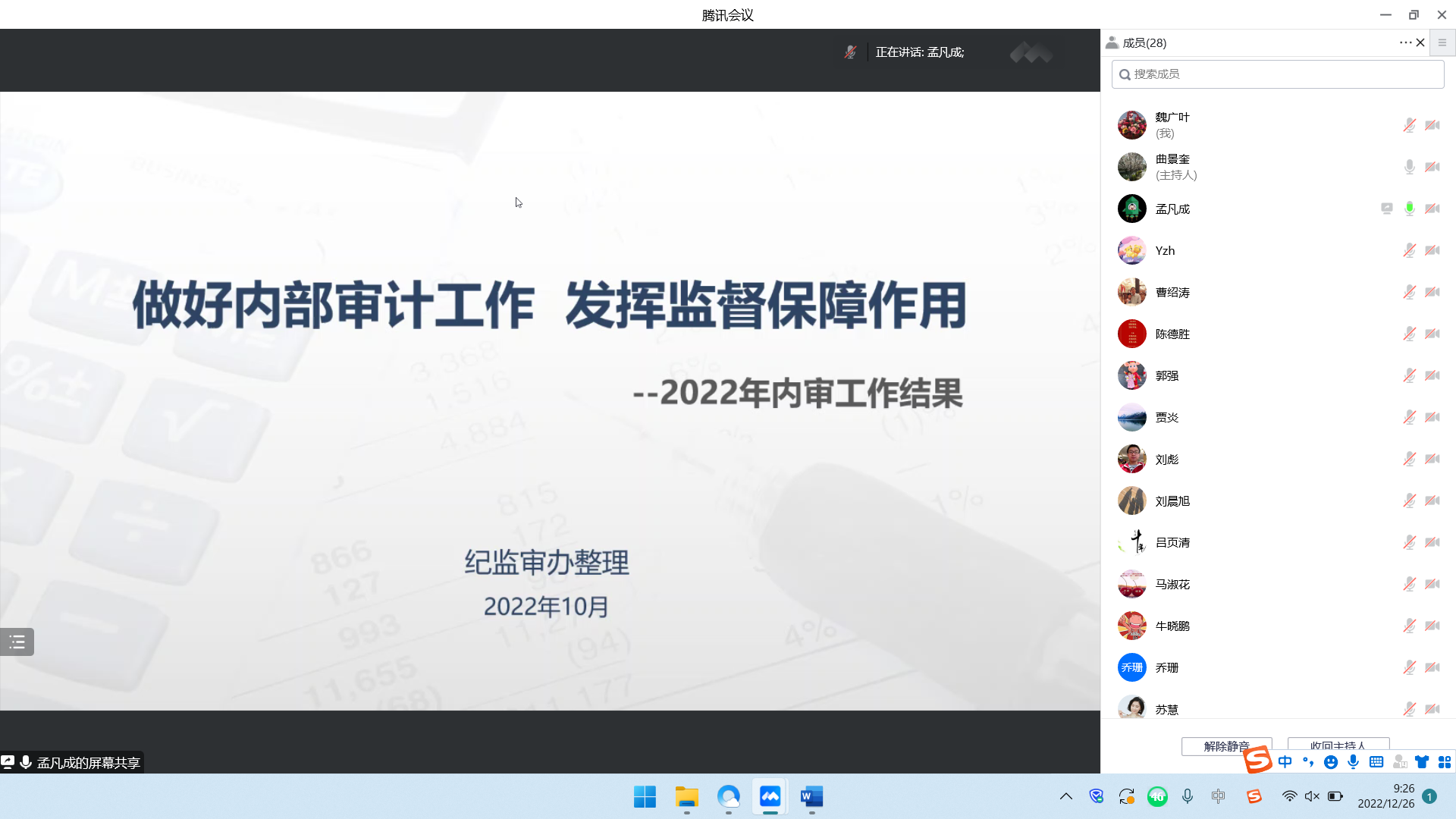 12月26日,湿法冶金党支部以线上腾讯会议形式组织支部党员集中学习党的二十大报告内容,总结2022年支部党建工作,会议由党支部书记曲景奎同志主持,党支部28名党员参加学习。