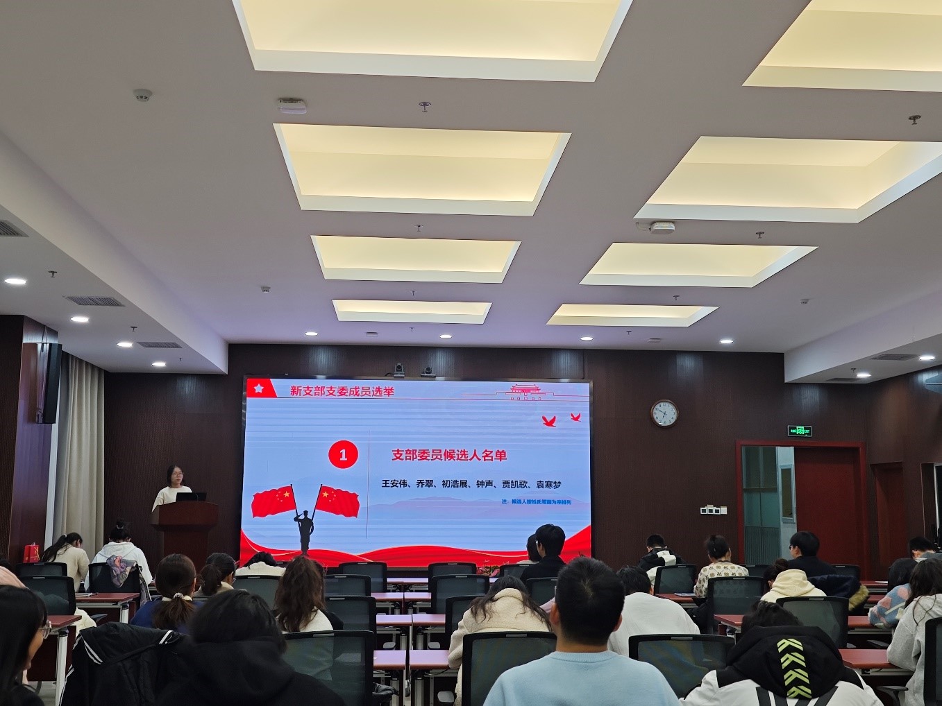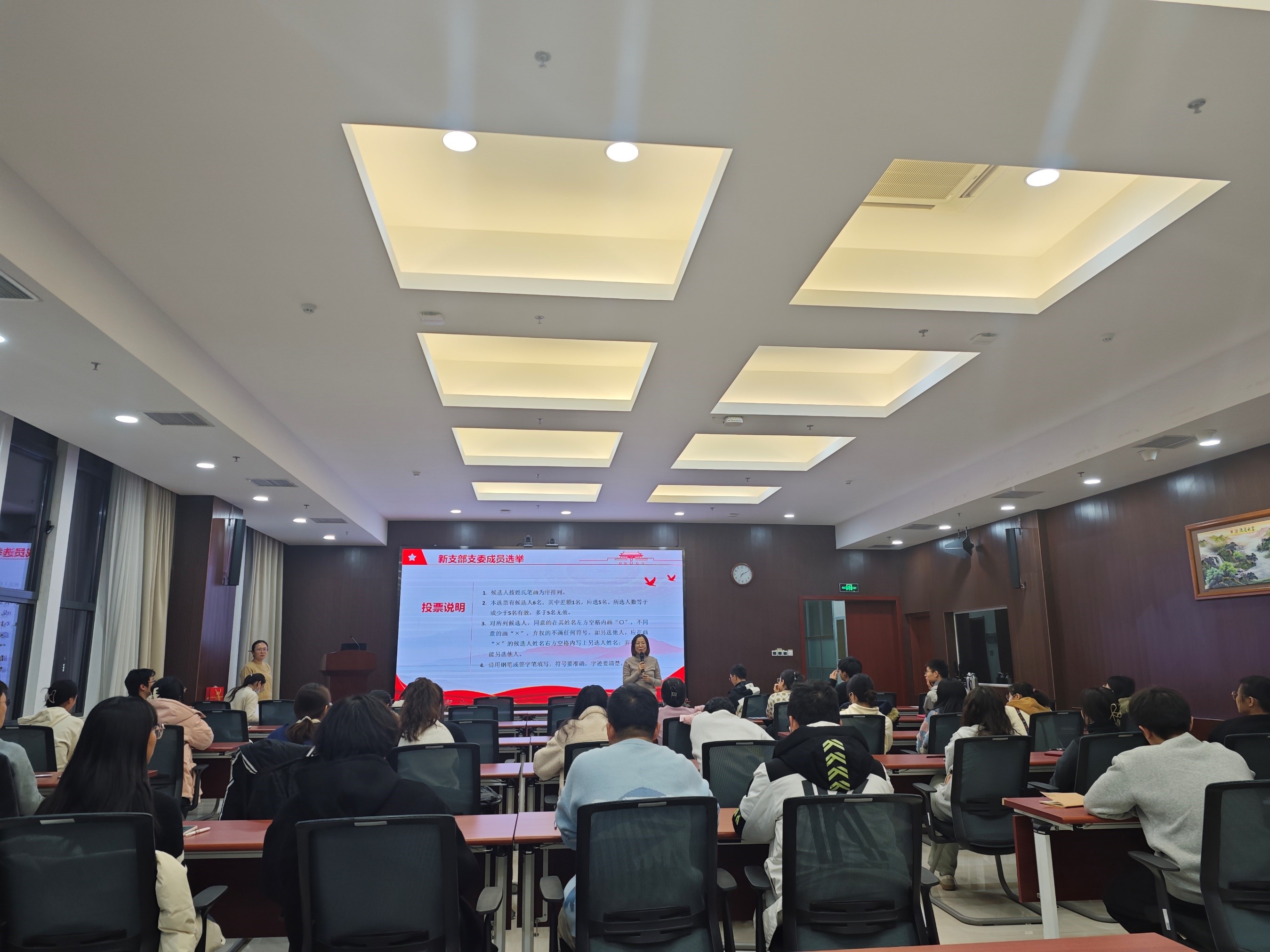 大会第二项,支部委员会选举。大会一致通过了新支部支委选举方式,绿色研究生第一党支部书记、副书记、宣传委员、青年委员由原支部支委继续担任,并对组织委员进行增补;绿色研究生第四党支部支委全部重新选举产生。会上,陈柄彤同志宣读选举办法,宣布支委候选人名单,宣布并通过监票人员名单,宣读投票注意事项。各候选人依次发言完毕后,由全体党员无记名投票选举两支部委员会委员。