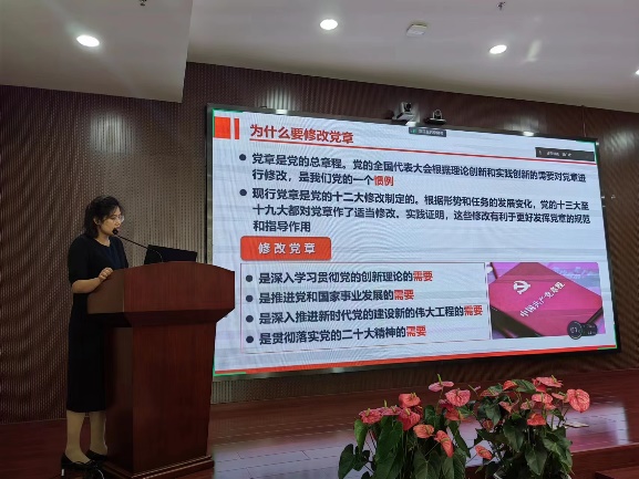 宣传委员薛天艳同志带领学习新旧党章对比和《中国共产党廉洁自律准则》等