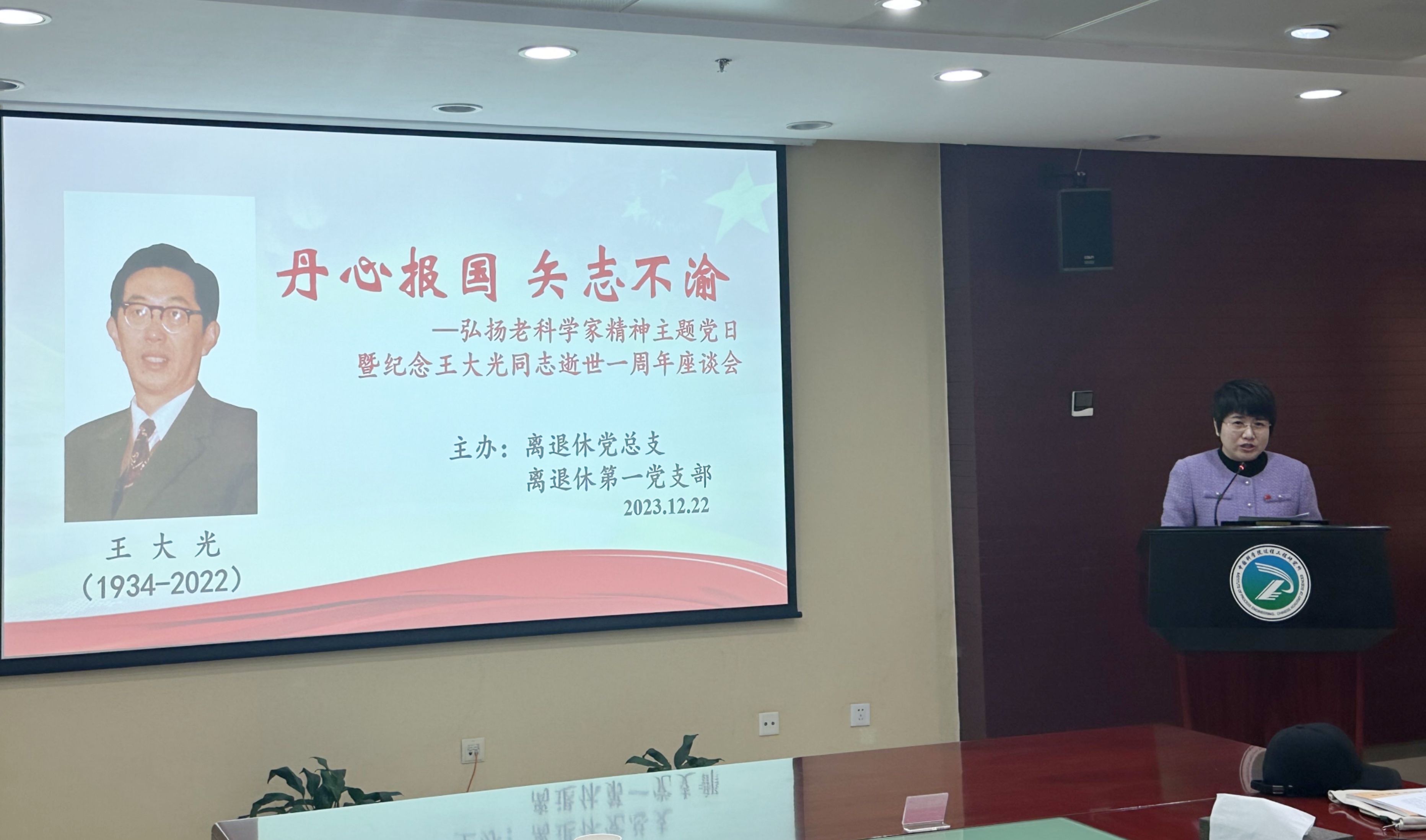 12月22日,离退休党总支、离退休第一党支部召开“弘扬老科学家精神主题党日暨纪念王大光同志逝世一周年座谈会”,近40位老党员和原二室的老同志以及王大光老师的家人、学生参会,其中近三分之一是“80后”老前辈。所党委书记朱庆山、党办主任刘冰莅临会议。