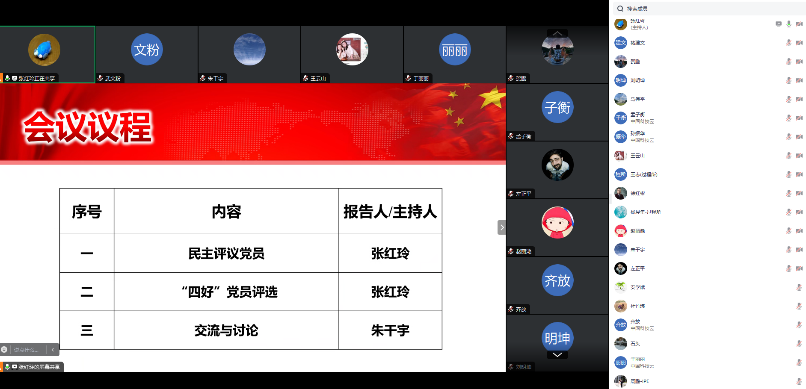 2月22日,资源环境党支部召开了第一季度党员大会暨民主评议党员会议。会议分为2023年度民主评议党员、“四好”党员评选和交流讨论三个部分。因支部出差党员较多,会议采取线上会议方式进行。