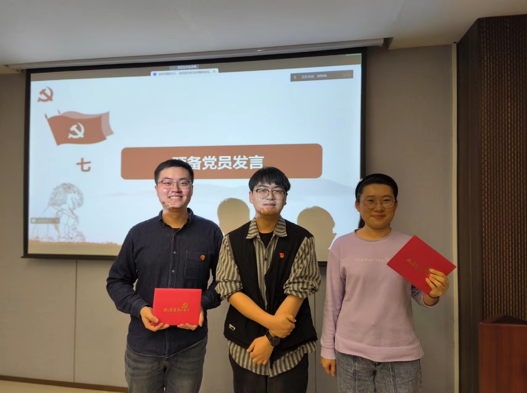 讨论过后,与会正式党员进行无记名投票表决,由组织委员巩向阳同志宣读表决结果。经支部大会表决通过,决定同意马一新、庄晟逸同志由预备党员按时转正为中共党员,全体同志鼓掌祝贺,组织委员为他们颁发转正贺卡。两位同志慷慨激昂地发表了转正感言,表示将继续提高自身政治素养,努力学习,切实提高自己的科研能力,不忘初心、牢记使命。