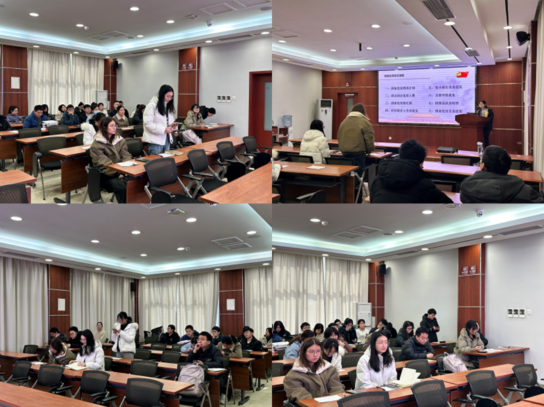 随后余丹同志就个人情况、入党动机和今后规划等作了详细汇报,余丹同志的培养联系人肖倩同志、侯萍同志、苏风梅同志和党小组组长杨海倩分别讲述了余丹同志的平日表现和思想状况,并发表了同意余丹同志转正的意见。
