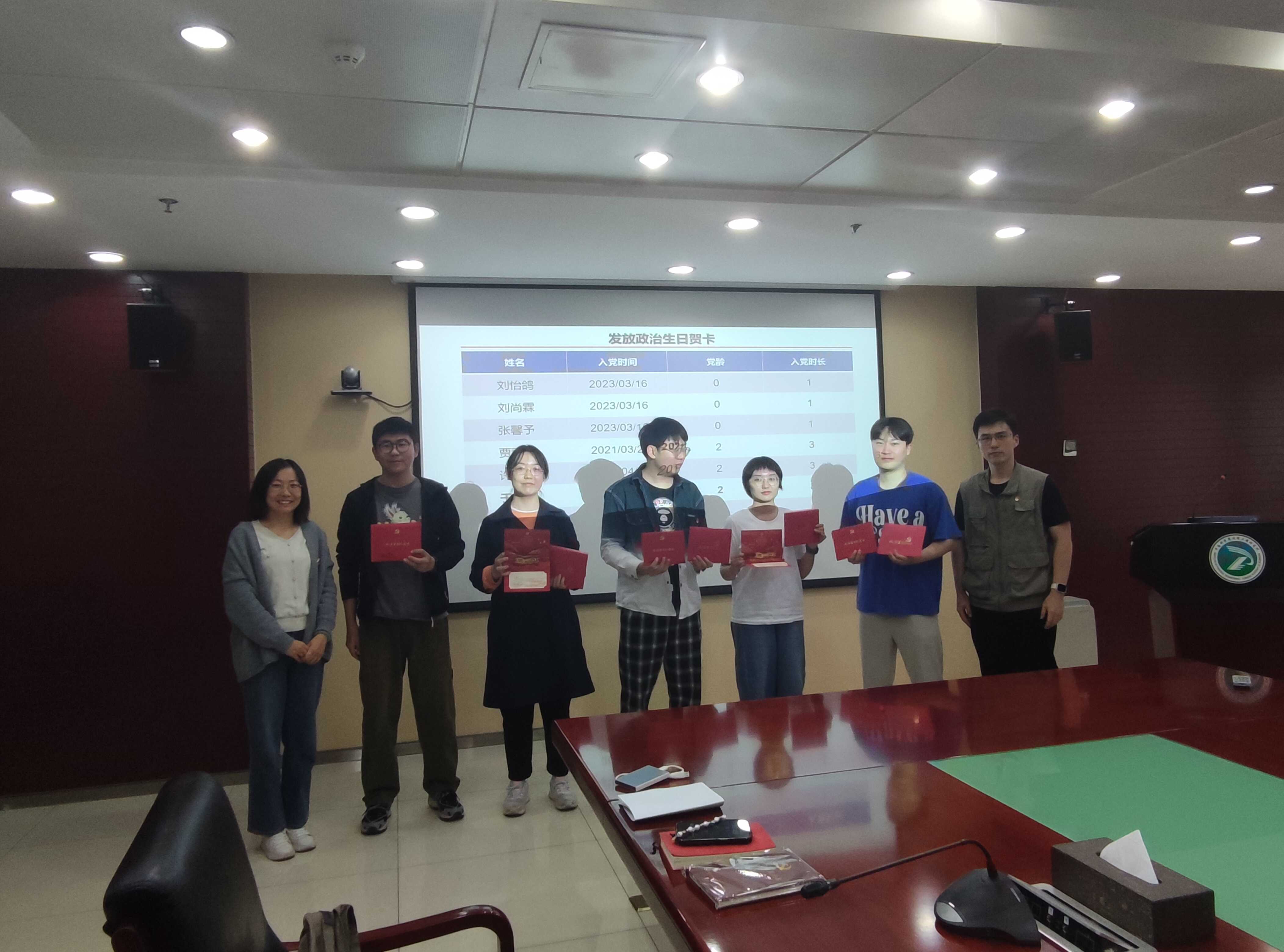 会议最后,杨帆老师为在3、4月份入党的五名同志颁发“政治生日贺卡”。这份特殊的“生日礼物”,不仅是对他们个人成长的真挚祝福,更是一次深刻的入党历程回顾。“党员过政治生日”制度的实施,不仅让支部党员更加深刻地认识到自己的身份和使命,也进一步增强了党员的责任感和使命感。
