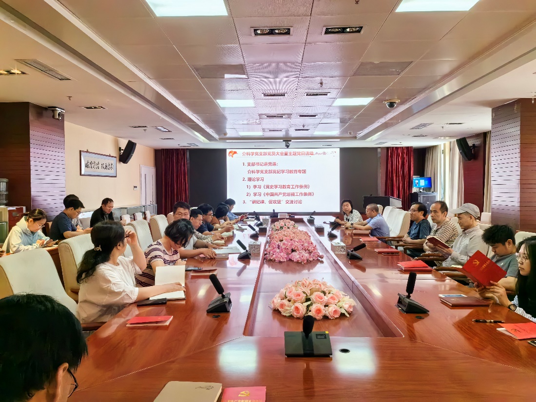 根据U9彩票党委关于党纪学习教育的安排部署,围绕党纪学习教育的目标要求,介科学党支部于2024年5月21日上午召开支部党员大会暨主题党日,专题学习了习近平总书记关于党纪学习教育的重要讲话和重要指示精神,深化了对加强党的纪律建设重要性的认识,活动由支部副书记任瑛同志主持。
