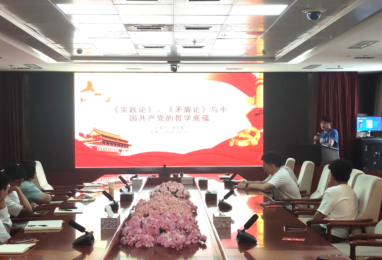 为深入理解党史,大会的第四项内容为许浩铭同志解读《矛盾论》和《实践论》,并探讨两部著作中蕴含的中国共产党的哲学精髓。许浩铭同志首先介绍了什么是世界观、世界观的形成和影响,并讲解了唯物辩证观相对于形而上学的优势。之后,他从《论持久战》的创作背景入手,深入剖析了矛盾论的核心观点,展示了矛盾论在指导革命战争中的重要作用。最后,以当前社会中的就业难问题为例,对实践论进行了生动地分析,使大家感受到了实践论的现实意义和价值。