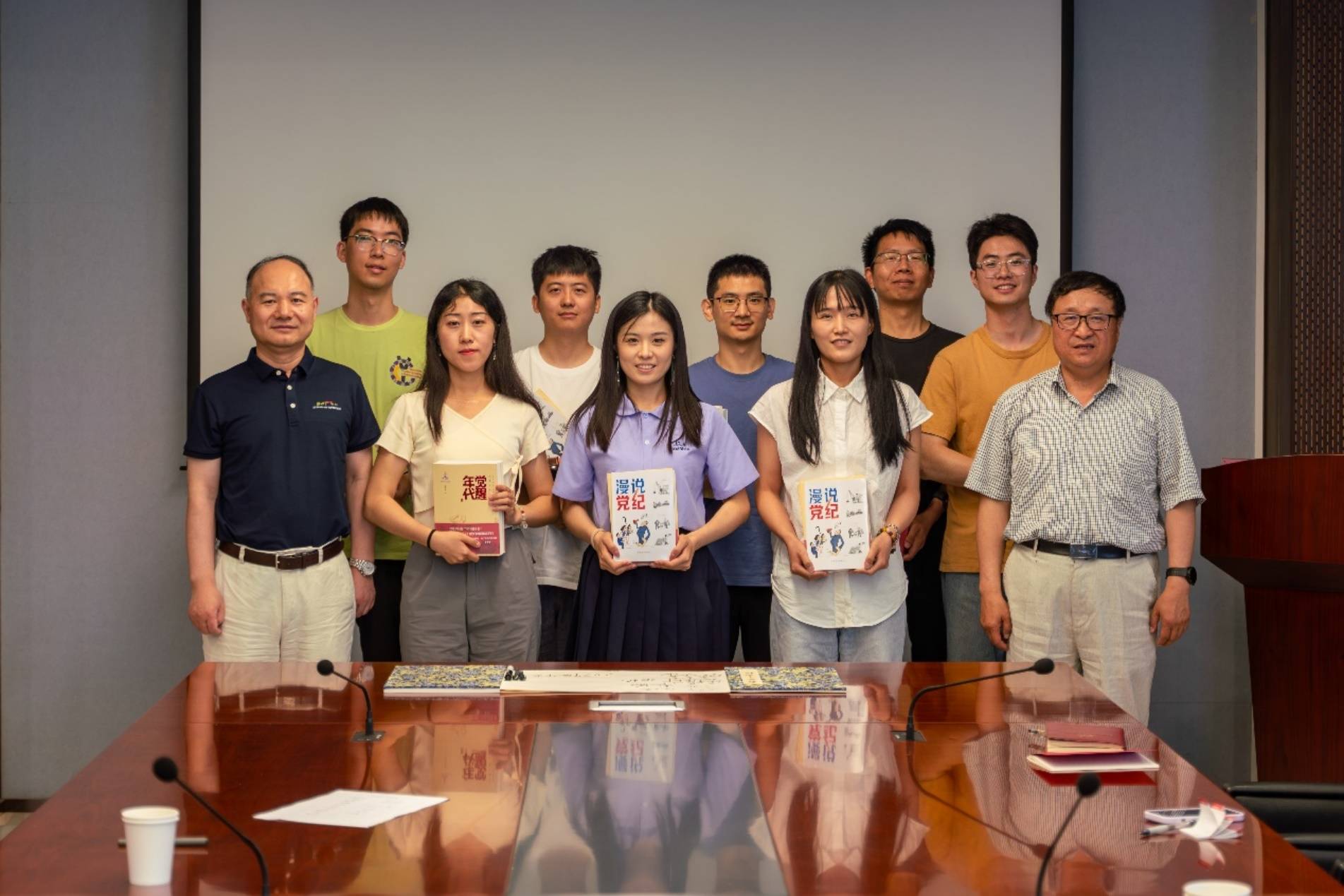 会议最后,支部为毕业生赠送了《觉醒年代》和《漫说党纪》两本书籍,并由两位老师亲笔签名。毕业生们在浓厚的氛围中感受到了党组织的关怀和期望,留名于支部奋斗卷轴。相信在党的引领下,大家定能在未来的学习和工作中取得更加辉煌的成就。