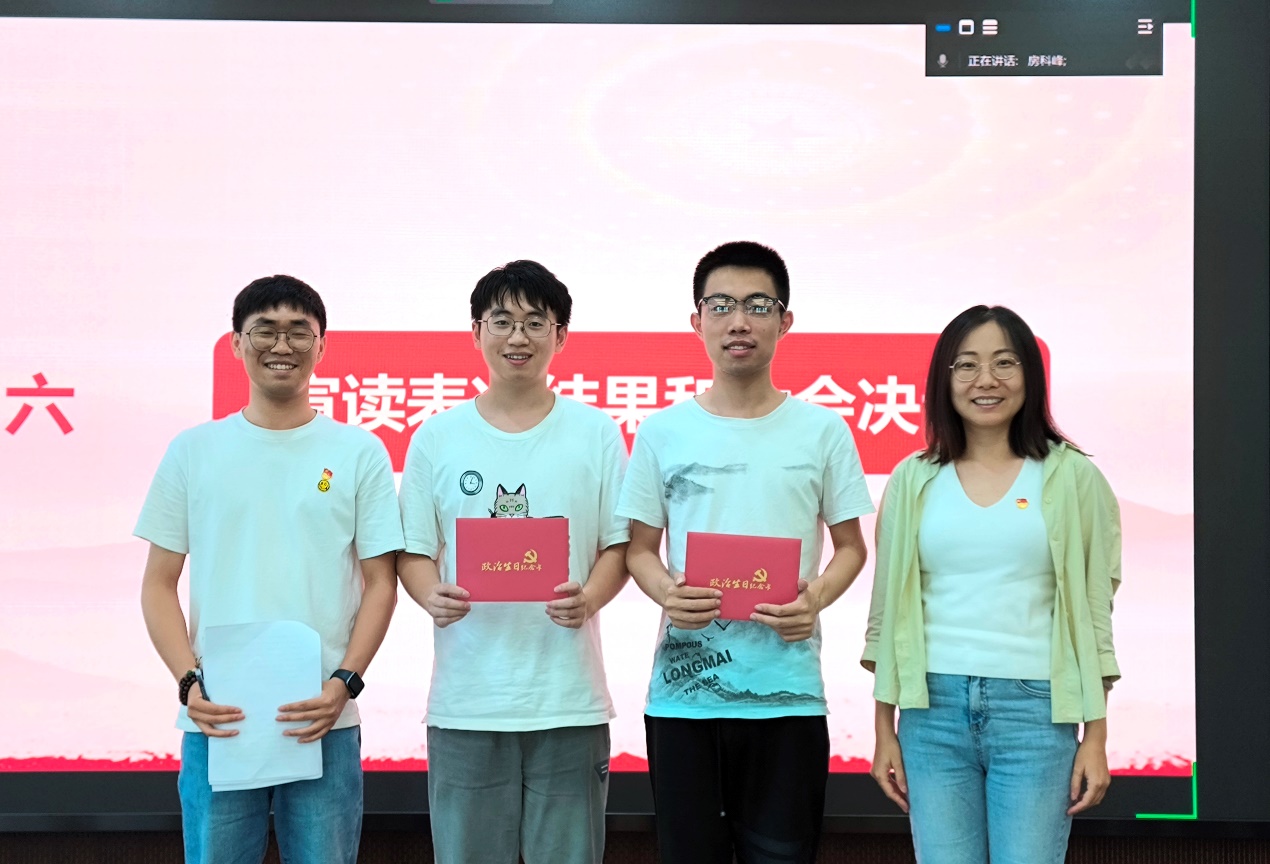 按照《中国共产党发展党员工作细则》中预备党员转正的流程,党支部对赵越、梁思棋同志转正事宜进行了充分讨论。经过大会同志充分讨论与无记名投票,书记房科峰同志宣读大会表决决议,同意两位预备党员按期转正。杨帆老师向他们颁发“政治生日”纪念卡。各位预备党员表态,今后将以一名优秀党员的标准严格要求自己,不忘初心跟党走,在工作学习中勇创佳绩。