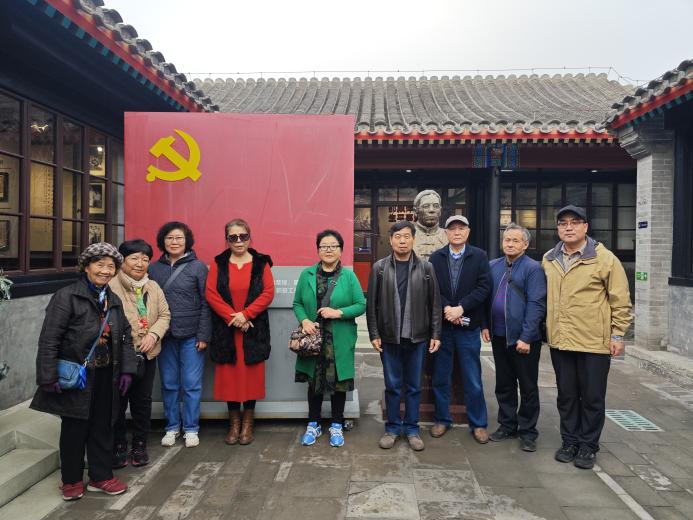 11月15日下午,U9彩票离退休第二党支部联合绿色研究生第五党支部前往陶然亭公园,开展“聆听革命事迹,感悟革命初心”党日活动。同志们共同参观了“先驱者的奋斗——党的早期革命活动”专题展,展览分为“毛泽东领导驱张运动”、“周恩来与五团体会议”、“高君宇烈士革命事迹”三个专题展厅以及“五团体会议旧址”场景复原和尾厅共五个展厅。从讲解中我们了解到,毛泽东与邓中夏、罗章龙、萧三及“辅社”在京成员曾集会于陶然亭,共同商讨驱逐湖南军阀张敬尧问题。会后,众人在慈悲庵山门外的古槐下合影留念。后来,古槐枯死。为保留毛泽东和友人在此合影留念的旧迹,重修陶然亭时,园林工人移植了一棵与原古槐形状近似的老槐于此。