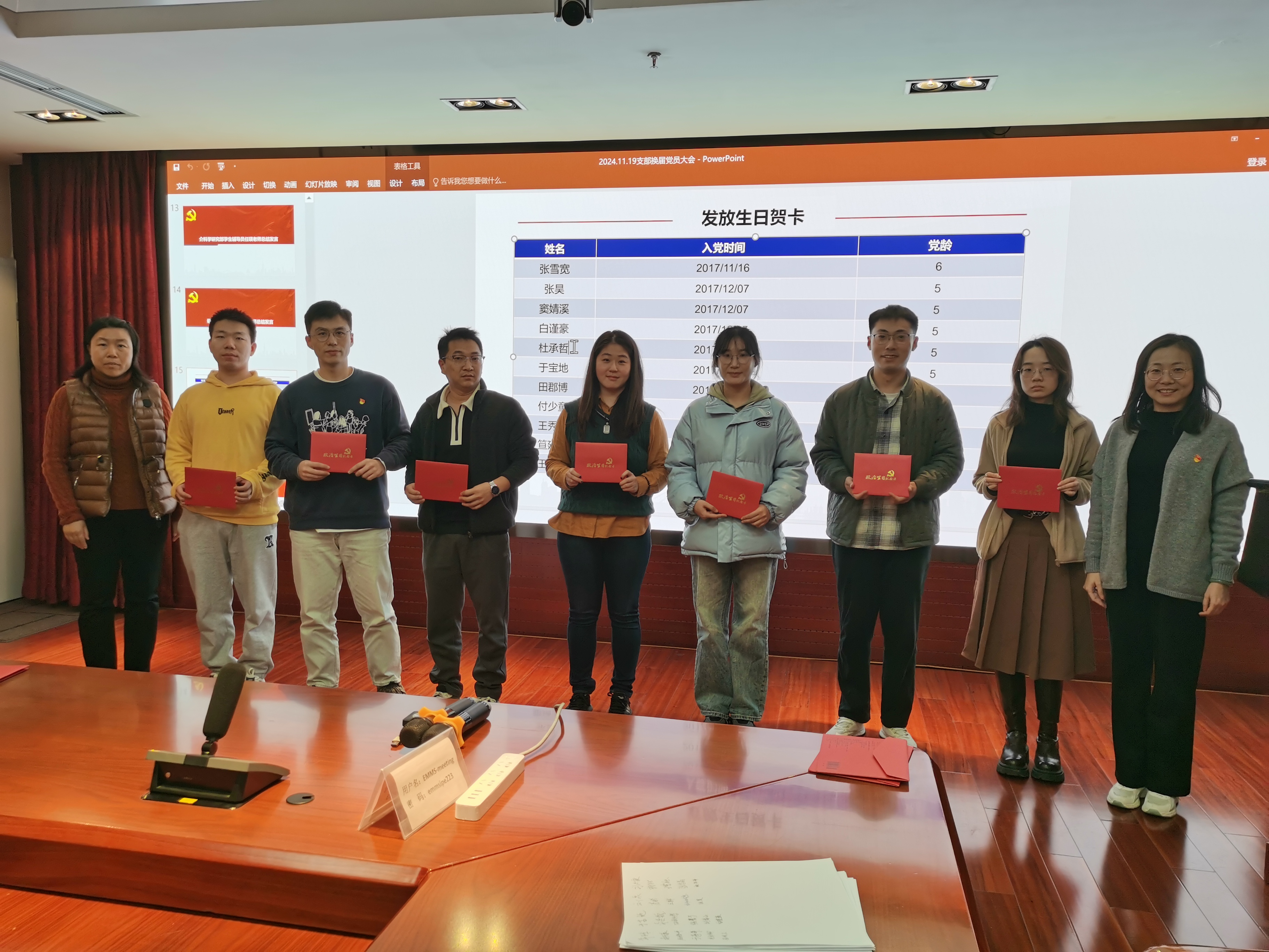 在监票人和计票人进行选票统计时,任瑛老师与杨帆老师向党支部七名党员赠送政治生日纪念贺卡并致贺词。手捧政治生日贺卡,大家纷纷表示,要不忘初心、牢记使命,时刻牢记党员“第一身份”,用实际行动践行自己入党的誓言。