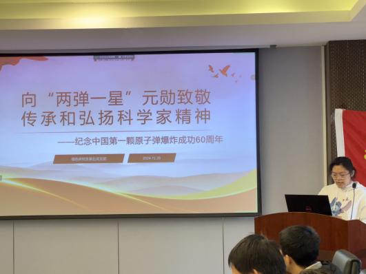 大会第二项为传承和弘扬科学家精神,向“两弹一星”元勋致敬。支部党员共同学习“两弹一星”精神,表示作为党员,应像老一辈科学家那样心怀“国之大者”,以维护国家的最高利益为使命,积极响应国家的伟大号召,把个人的理想追求自觉地融入党和国家的伟大事业之中,建功立业新时代。