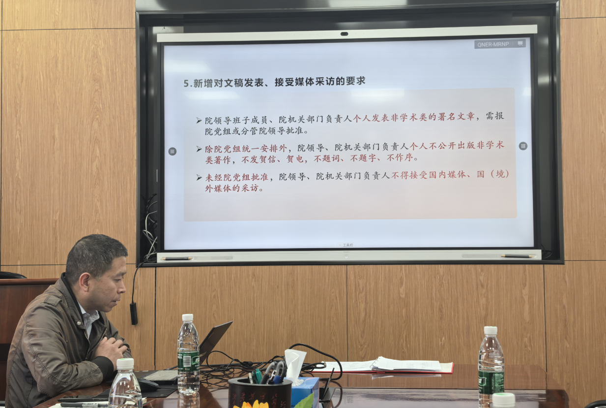 为深化党纪学习教育成果,以严明的纪律保障抢占科技制高点核心任务顺利实施,刘文巍同志传达了“深化党纪学习教育,严明岗位工作纪律”专项工作要求,对研究所新修订的兼职管理实施细则和考勤管理办法进行了介绍,宣贯了抢占科技制高点方向及科研项目申报管理实施细则。