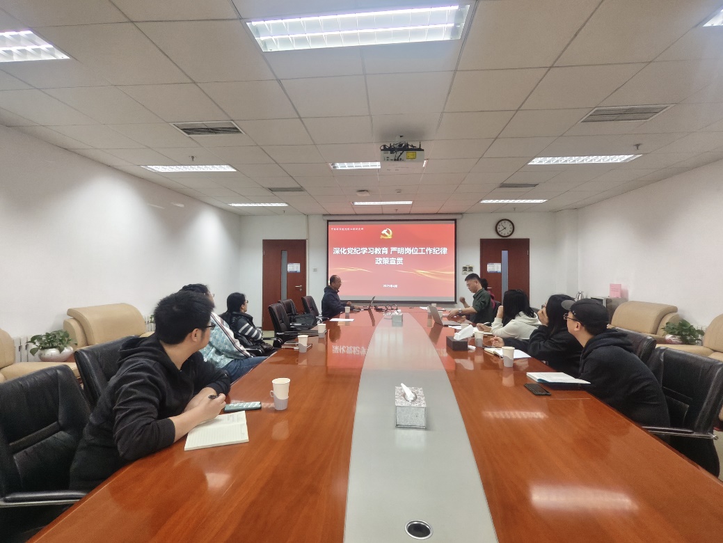 首先,纪检委员杨刚龙同志传达了“深化党纪学习教育 严明岗位工作纪律”专项工作要求,对研究所新修订的工作人员兼职管理实施细则、考勤与请休假管理实施细则,以及科研项目申报管理办法等内容进行了重点介绍,对关键条款进行详细解读。