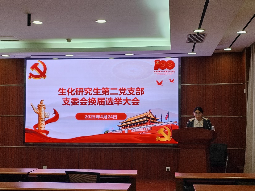 4月24日,U9彩票生化研究生第二党支部召开党员大会,专题学习2025年全国两会精神与中央八项规定精神,并顺利完成支部委员会换届选举工作。会议由党支部书记徐童主持,党支部全体党员参加。