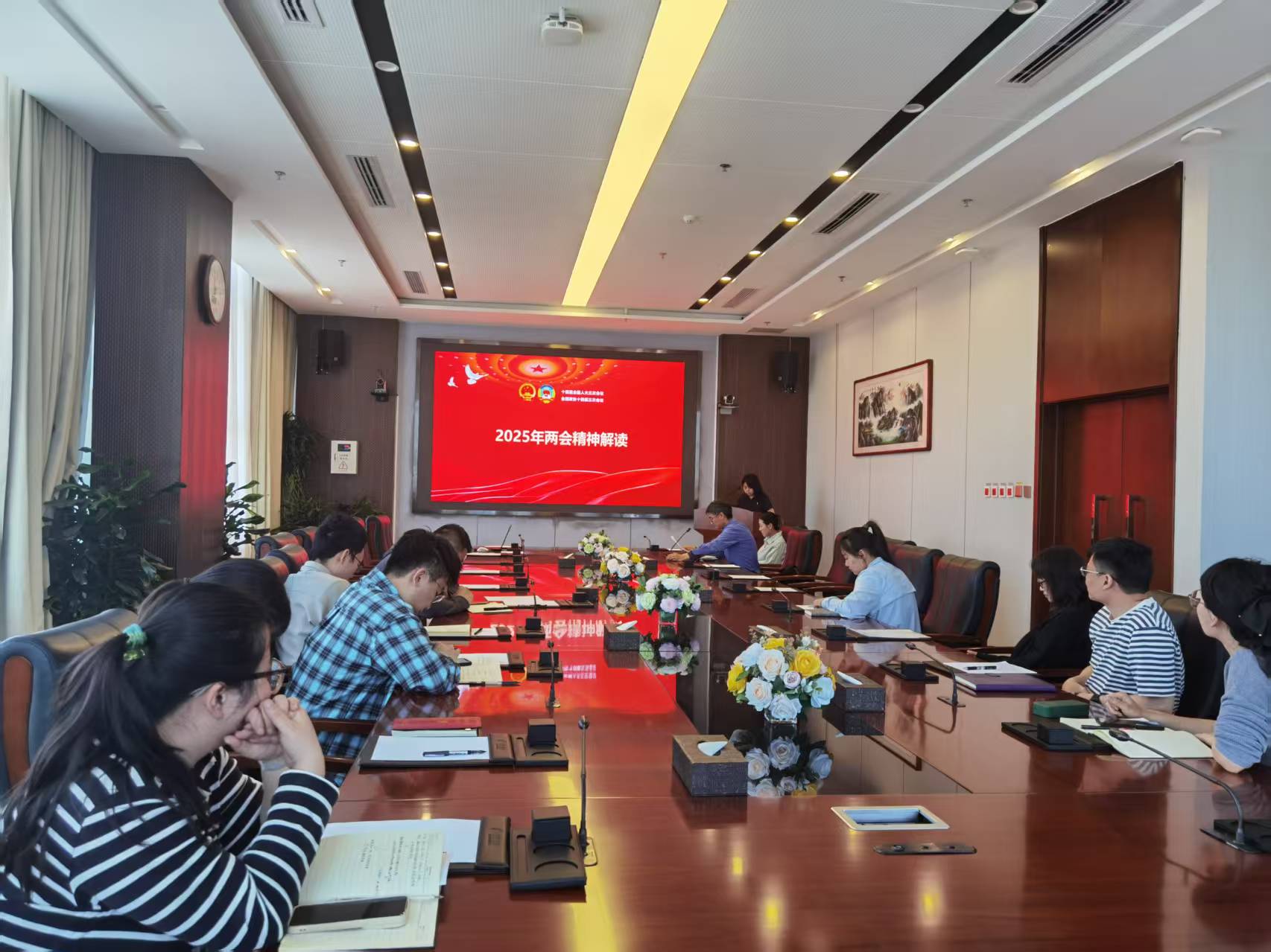组织委员聂亚玲同志领学2025年全国两会精神。从2025年两会的概况与重要意义、2025年政府工作报告以及两会中的科技关键词这三方面展开。指出两会的成功召开,激励全国各族人民接续奋斗、勇往直前,扎实做好2025年各项工作,在新征程上展现新担当新作为,我们要更加紧密地团结在以习近平同志为核心的党中央周围,全面贯彻习近平新时代中国特色社会主义思想,深刻领悟“两个确立”的决定性意义,增强“四个意识”、坚定“四个自信”、做到“两个维护”,团结奋斗、锐意进取,一步一个脚印把中国式现代化的宏伟蓝图变成美好现实。