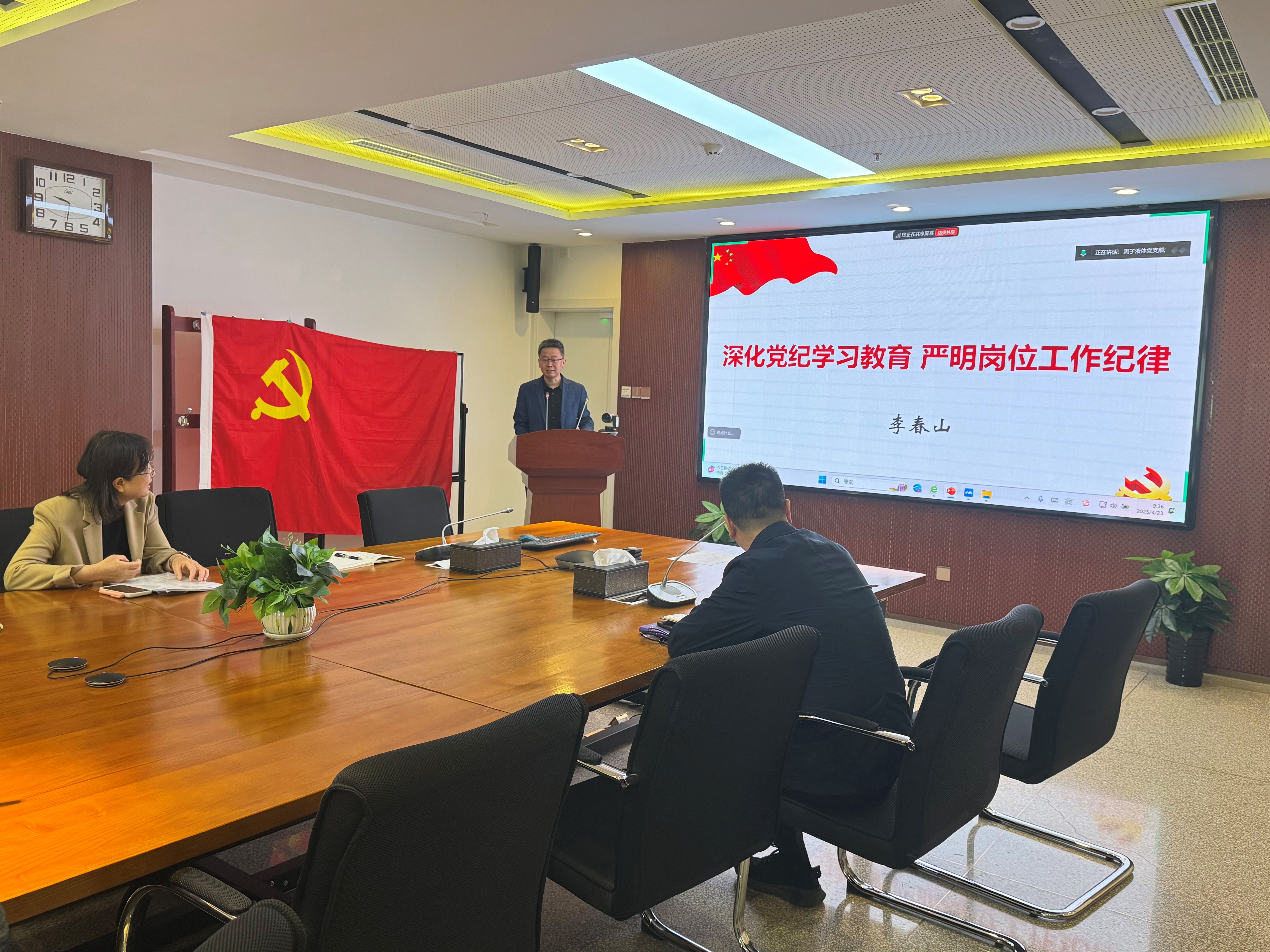 活动伊始,所党委委员、副所长李春山同志以“深化党纪学习教育,严明岗位工作纪律”为题作政策宣贯。李春山介绍,当前中国科学院正处于深入贯彻党的二十届三中全会和全国科技大会精神,加快抢占科技制高点的关键时期,严明岗位工作纪律是为了聚焦突出问题,加强纪律建设,强化规范管理,引导广大科研人员把时间和精力专注投入到科技创新主责主业上来。随后,详细介绍了研究所《工作人员兼职管理实施细则》《考勤与请休假管理实施细则》《科研项目申报管理办法》三项核心制度,结合典型案例进行深度剖析,并强调,纪律是事业的基石,作风是发展的保障,大家要严格遵守研究所各项规章制度,认真履行岗位职责,积极投身于重大科研任务攻关中。
