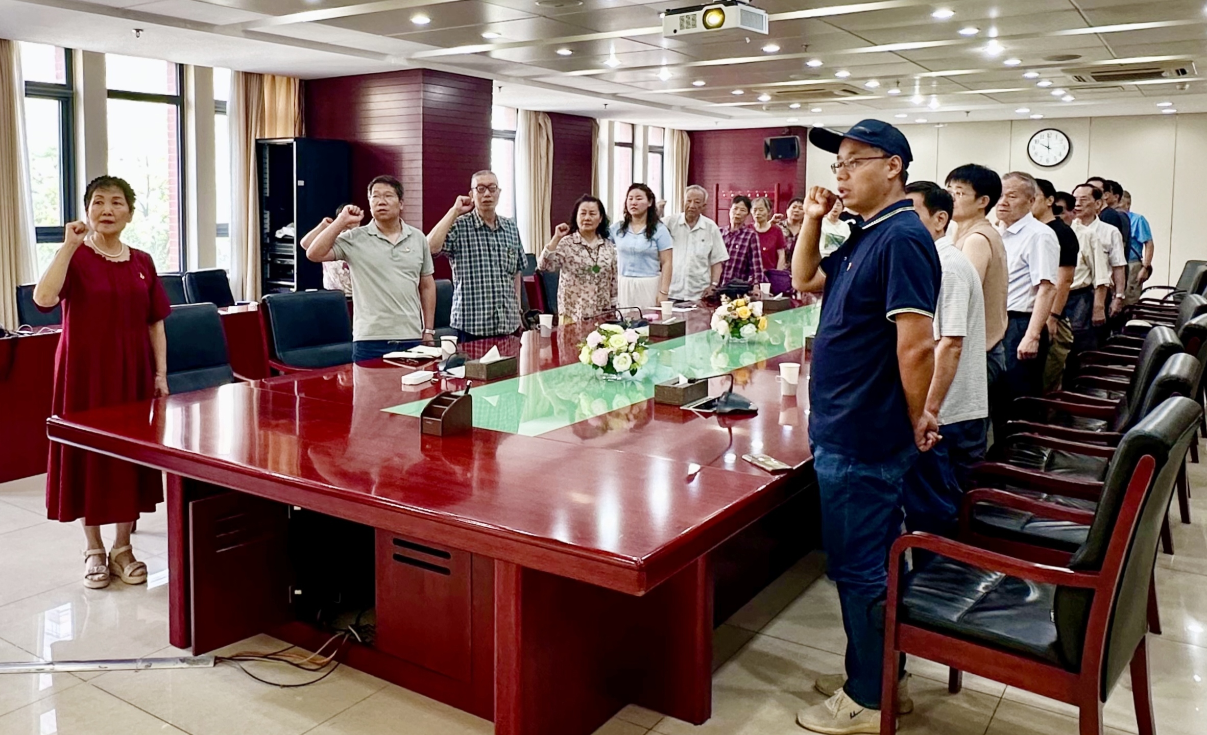 离退休一支部共有15位 “光荣在党50年”以上的老党员,艾菁带领老中青党员重温入党誓词,学习伟大建党精神,缅怀了4位近两年离世老党员为研究所的发展和为党支部建设所做的贡献, 6月、7月入党的14位党员与同志们共同过政治生日。