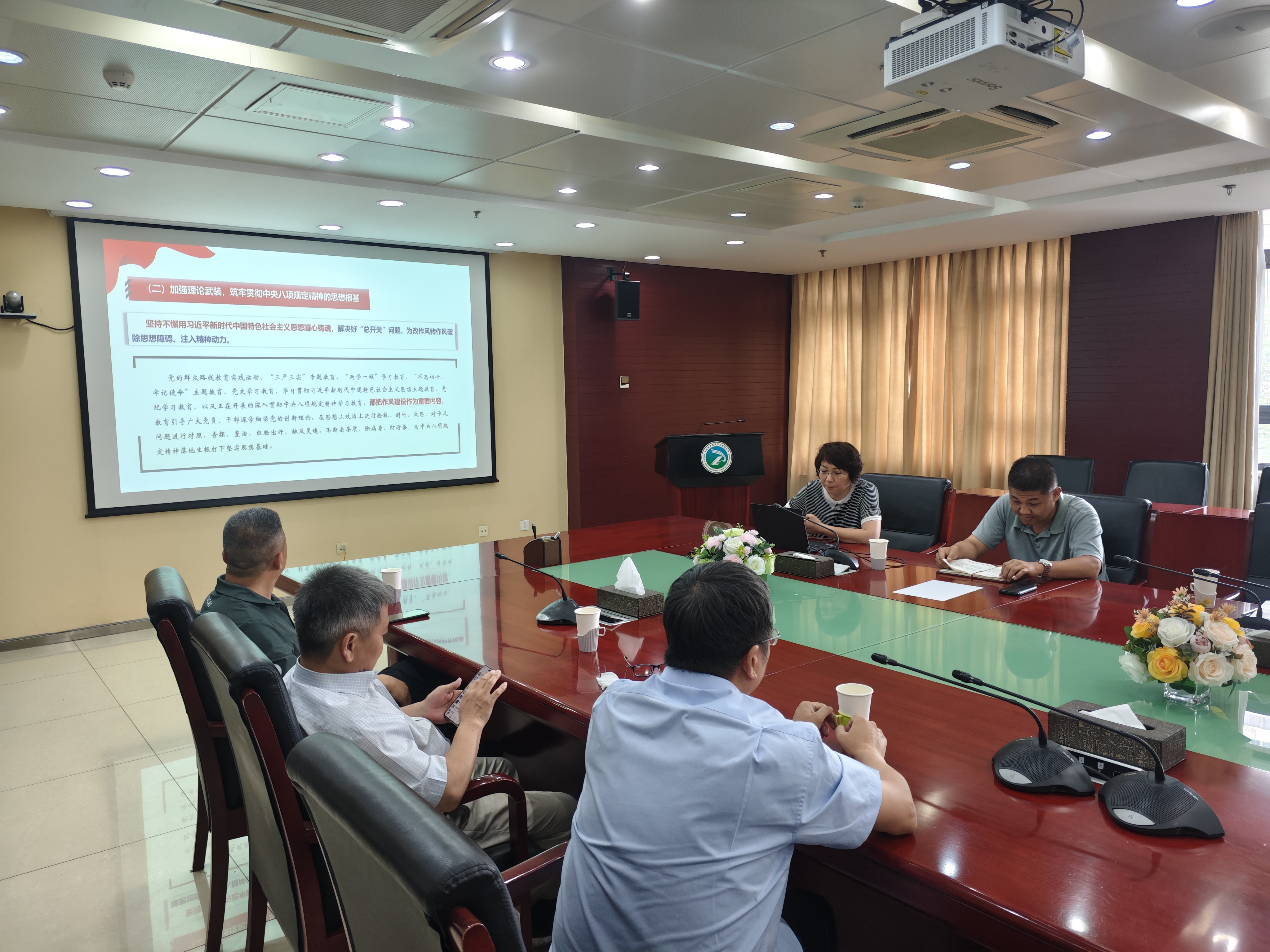 会议首先由党支部副书记江霞领学“党的十八大以来深入贯彻中央八项规定精神的成效和经验”、“八项规定改变中国”。党的十八大以来,以习近平同志为核心的党中央总结运用党的百年奋斗历史经验,从制定和落实中央八项规定开局破题,纠治形式主义、官僚主义、享乐主义和奢靡之风“四风”问题,推动全面从严治党向纵深发展,开辟了以伟大自我革命引领伟大社会革命新境界。