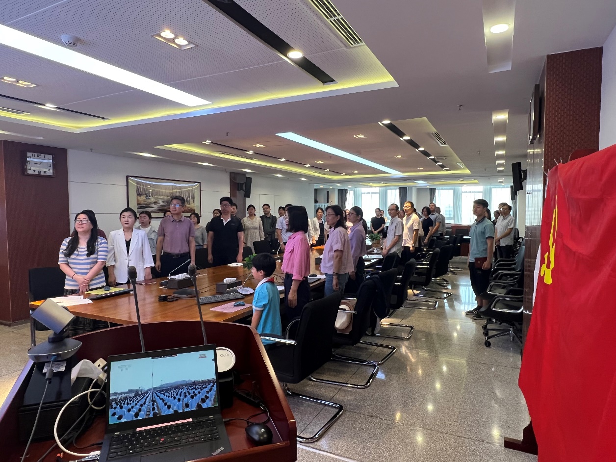 上午9时,纪念大会在庄严的国歌声中正式开启。随着激昂的《义勇军进行曲》旋律响起,党支部全体成员自发起立,身姿挺拔,神情肃穆,齐声高唱国歌。每一句歌词都唱出了对伟大祖国的深切热爱与无限忠诚,每一颗心都充盈着崇高的敬意与澎湃的激情。这一仪式,不仅是对活动主题的深刻诠释,更是一次初心的叩问与精神的洗礼,为整个活动奠定了庄严、奋进的基调。