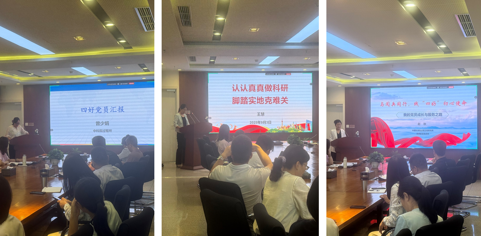 伴随着阅兵仪式带来的震撼,紧接着进入身边榜样学习环节。两个党支部共有三名党员在政治素质、道德品行、业务能力、服务群众等方面表现出色,获评中央和国家机关“四好”党员称号,会上她们逐一分享了自己在工作中的先进事迹。曾少娟同志数十年如一日,潜心钻研,攻克了多项离子液体吸收技术难题;王慧同志紧扣任务导向,先后在青蒿素提取、原油裂解等方面取得了重大成果;赵秋同志对待管理工作细致负责,精益求精,确保了研究部各项任务的零差错完成。这些来自不同岗位的先进典型,都在平凡的岗位上创造了不平凡的业绩,用实际行动生动诠释了爱岗敬业、锐意创新、勇于担当、甘于奉献的优秀品质。党员们认真聆听,进一步明确了努力方向,激发了见贤思齐、争先创优的内生动力。