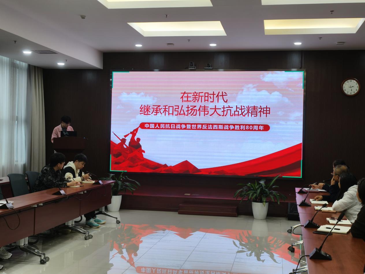 在红色精神传承学习环节,绿色研究生第三党支部青年委员胡耀先以“在新时代继承和弘扬伟大抗战精神”为主题,结合中国人民抗日战争暨世界反法西斯战争胜利80周年的时代背景,通过历史事件回顾、抗战精神内涵解读,激励全体党员尤其是青年党员,要从抗战精神中汲取奋进力量,在科研道路上不畏艰难、勇毅前行,以实际行动践行新时代使命担当。