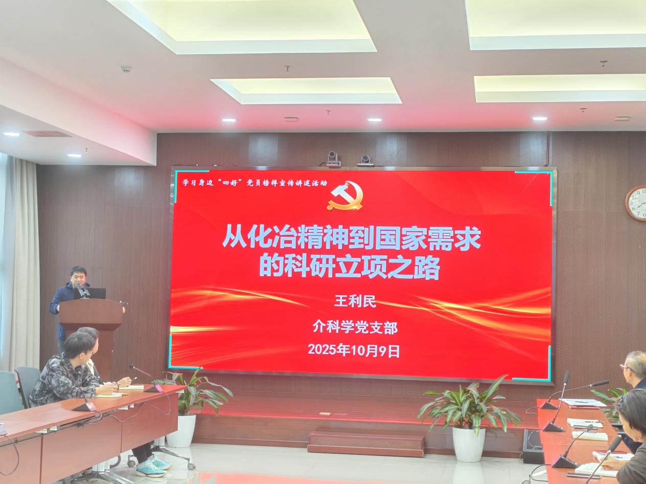 会议最后,中央和国家机关“四好”党员王利民以“从化冶精神到国家需求的科研立项之路”为题,分享了自身科研经历与感悟。他详细介绍了个人在研究领域的研究成果及产业化应用情况,讲述了主持国家级项目时,面对申请过程中的重重困难,始终坚持“攻坚克难、追求卓越”的信念,最终顺利推进项目并取得显著成效的故事。同时,王利民老师还结合研究所发展历程,重点回顾了多相实验室的成长轨迹,深情讲述了郭慕孙、李佑楚、李静海、李洪钟等科学家前辈为研究所发展和过程工程学科进步作出的卓越贡献,号召全体党员传承前辈们的科研精神,以“国家需求”为导向,在科研岗位上发光发热。