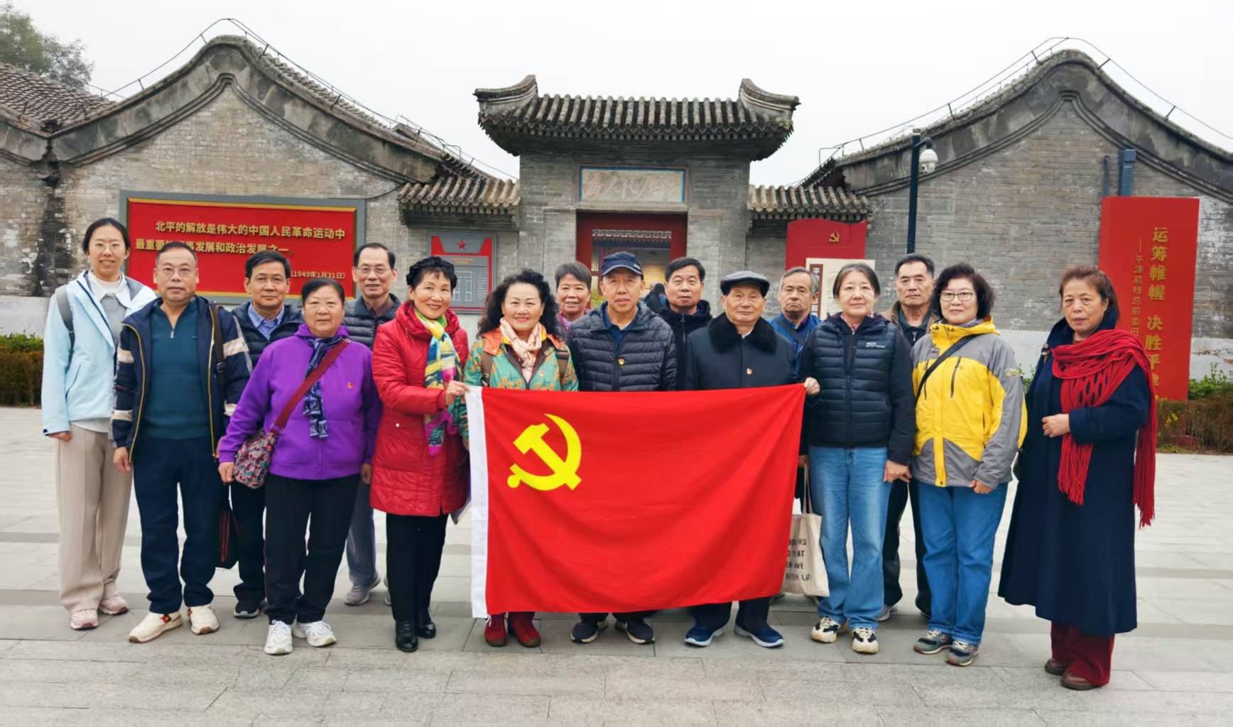 10月29日重阳节,为弘扬中华民族尊老敬老的传统美德,丰富离退休党员的组织生活,离退休党总支组织党员参观了通州宋庄平津战役指挥部旧址,并去燕达养老院慰问了住在那里的老党员。
