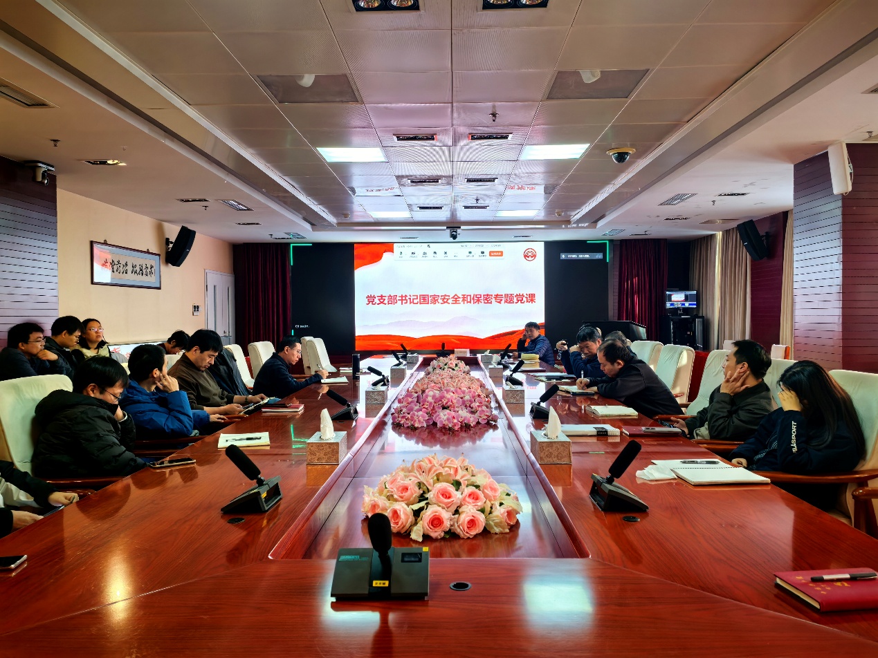 在国家安全与保密教育环节,全体党员共同观看警示教育片,通过真实案例直观感受泄密风险的危害性。紧接着,王利民讲国家安全和保密专题党课。他结合当前国内外复杂紧迫局势强调,保密工作是维护国家主权、安全和发展利益的核心生命线,任何形式的泄密行为,都可能直接阻碍国家科技自立自强进程,甚至对国家安全造成严重威胁,全体党员必须牢固树立“保密无小事”的意识,深刻认识保密工作的极端重要性与现实紧迫性。汇报中,王利民还传达了所保密办工作要求。