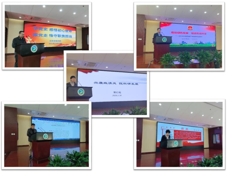 在支部书记微党课环节,介科学党支部副书记张楠同志和资源化工党支部副书记王体壮同志为大家讲党课。张楠以“学党史 感悟初心使命;跟党走 恪守职责担当”为主题,从马克思主义的诞生、马克思主义在中国的传播、党的成立与中国特色社会主义建设、学习党史的心得体会等方面进行讲解。党课不仅对中国共产党的革命、建设、改革的历史奋斗目标做了重点介绍,还结合我院发展实际着重讲解了党对中国科学院的关心关怀。张楠表示,新时代科技工作者要把习近平同志提出的“四个率先”和“两加快一努力”的要求作为一切工作的出发点和落脚点,作为检视工作成效的标准,科研人员要不畏辛劳、勇于攀登,科技报国。王体壮同志以“推动绿色发展,促进和谐共生”为题讲党课,以习近平总书记在国际和国内三次重要会议上提出的“碳中和”和“碳达峰”目标开篇,从全球能源发展大势、全球智库报告解读、中国科技发展环境、中国科技发展举措这四个方面着力进行讲解,指出“碳中和”“碳达峰”是人类应对全球气候变化和人类可持续发展的共同需求,并指出当前中国科技发展面临的严峻的国际形势,作为科技工作者,要紧跟国家科技战略步伐,在实现“碳中和”“碳达峰”目标上做出应有的贡献。