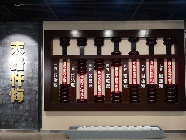 贪廉一念间,荣辱两世界。湖南省衡阳市反腐倡廉警示教育中心运用多米诺骨牌的形式,提醒领导干部算好“政治、经济、名誉、家庭、亲情、自由、健康”七笔账:一算“政治账”,不要自毁前程;二算“经济账”,不要倾家荡产;三算“名誉账”,不要身败名裂;四算“家庭账”,不要妻离子散;五算“亲情账”,不要众叛亲离;六算“自由账”,不要身陷囹圄;七算“健康账”,不要身心交瘁。