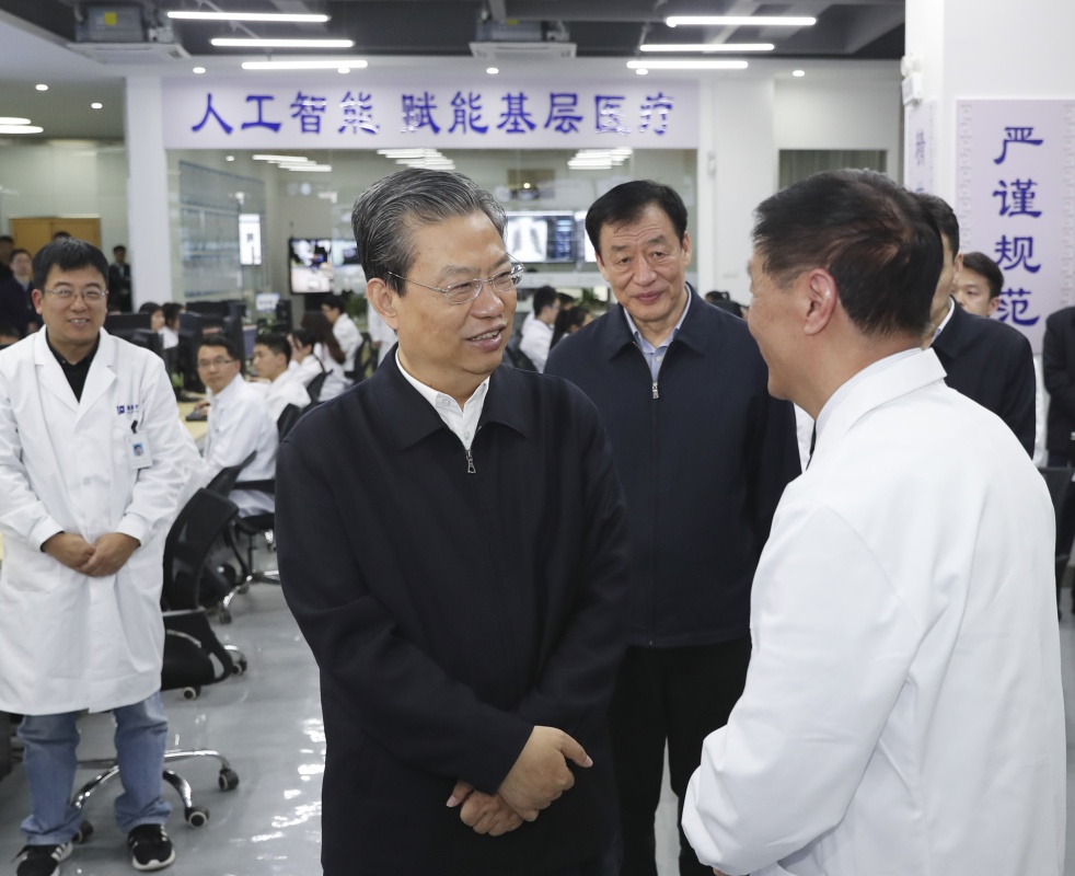 这是4月2日,赵乐际在江西中科九峰智慧医疗科技有限公司考察。