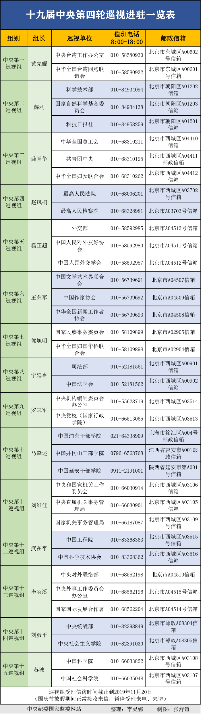 【中央纪委国家监委网站】十九届中央第四轮巡视进驻一览表